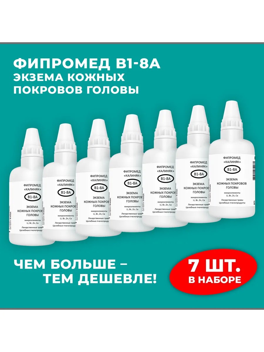 | Полное наименование товара | Фипромед Калиняк В1-8А Экзема кожных покровов головы, 7 шт. по 50 мл |