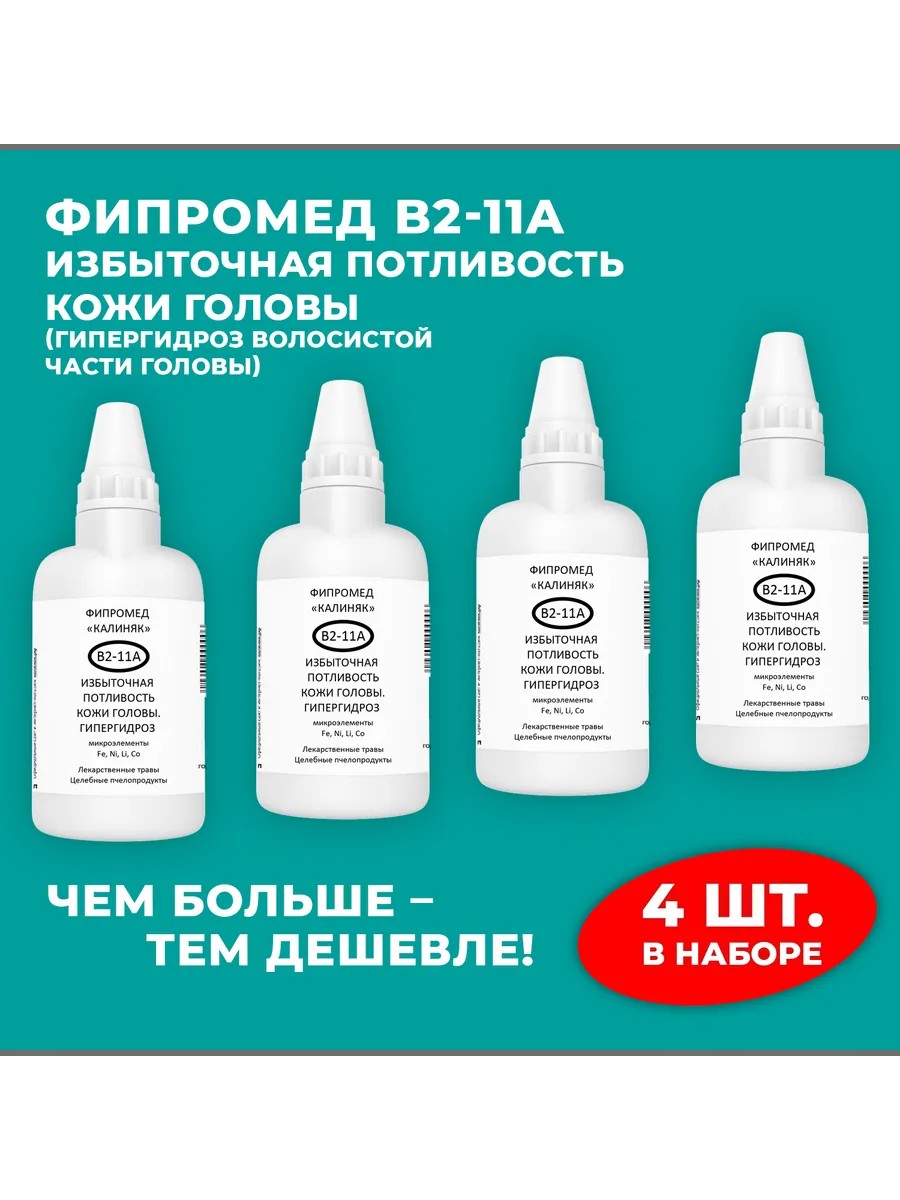 Калиняк Фипромед В2-11А Избыточная потливость кожи головы, 4 x 50 мл