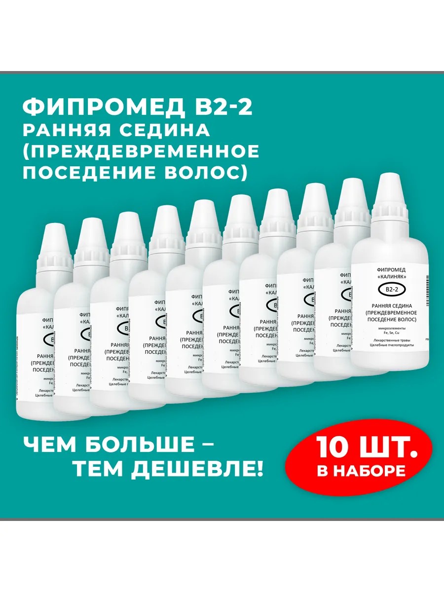 | Полное наименование товара | Фипромед Калиняк В2-2 Ранняя седина (преждевременное поседение волос), 10 шт. по 50 мл |