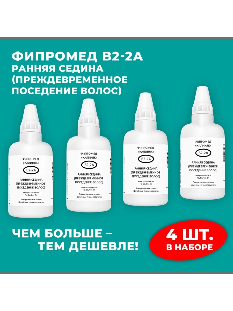 | Полное наименование товара | Фипромед Калиняк В2-2А Ранняя седина (преждевременное поседение волос), 4 шт. по 50 мл |