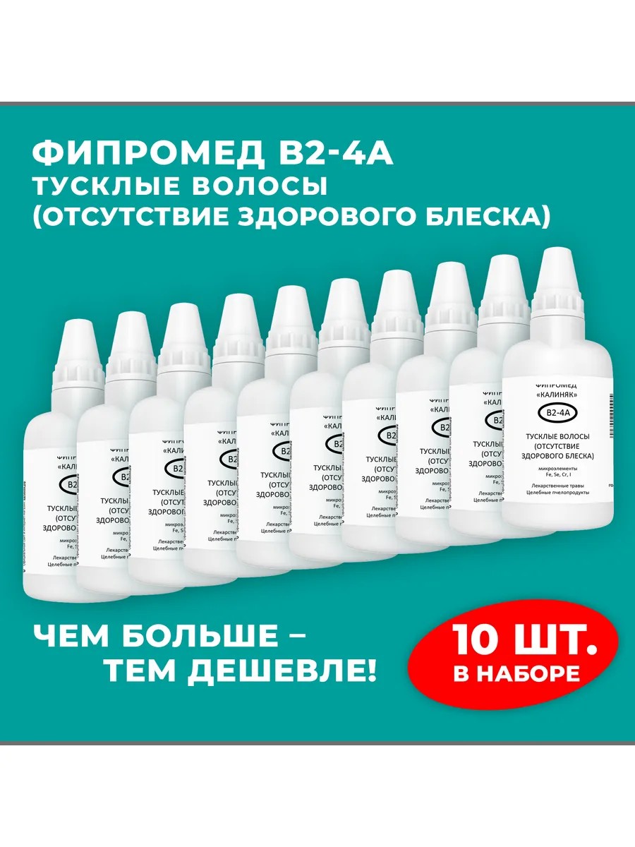 | Полное наименование товара | Фипромед Калиняк В2-4А Тусклые волосы (отсутствие здорового блеска), 10 шт. по 50 мл |