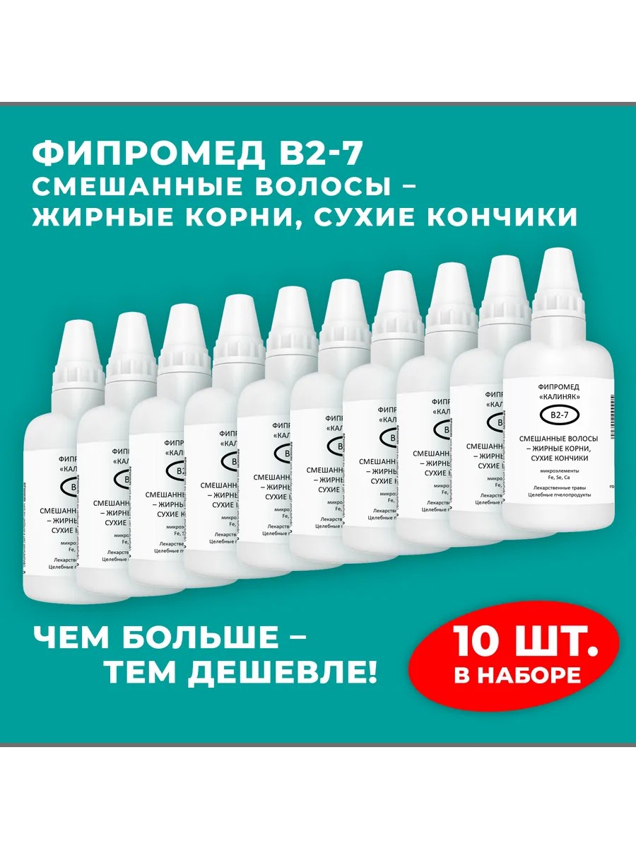 | Полное наименование товара | Фипромед Калиняк В2-7 Смешанные волосы — жирные корни, сухие кончики, 10 шт. по 50 мл |