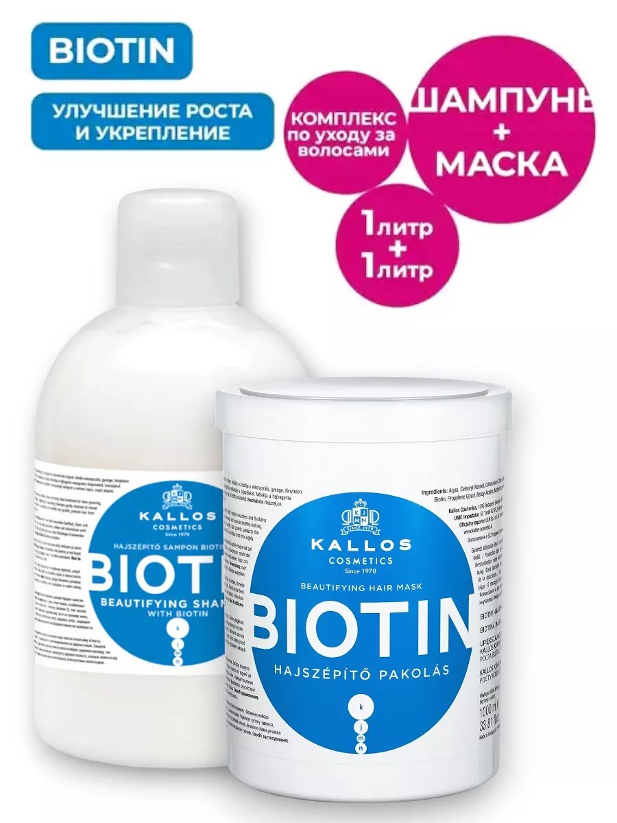 Kallos Cosmetics Biotin Набор косметический Маска 1 л. + Шампунь 1 л.