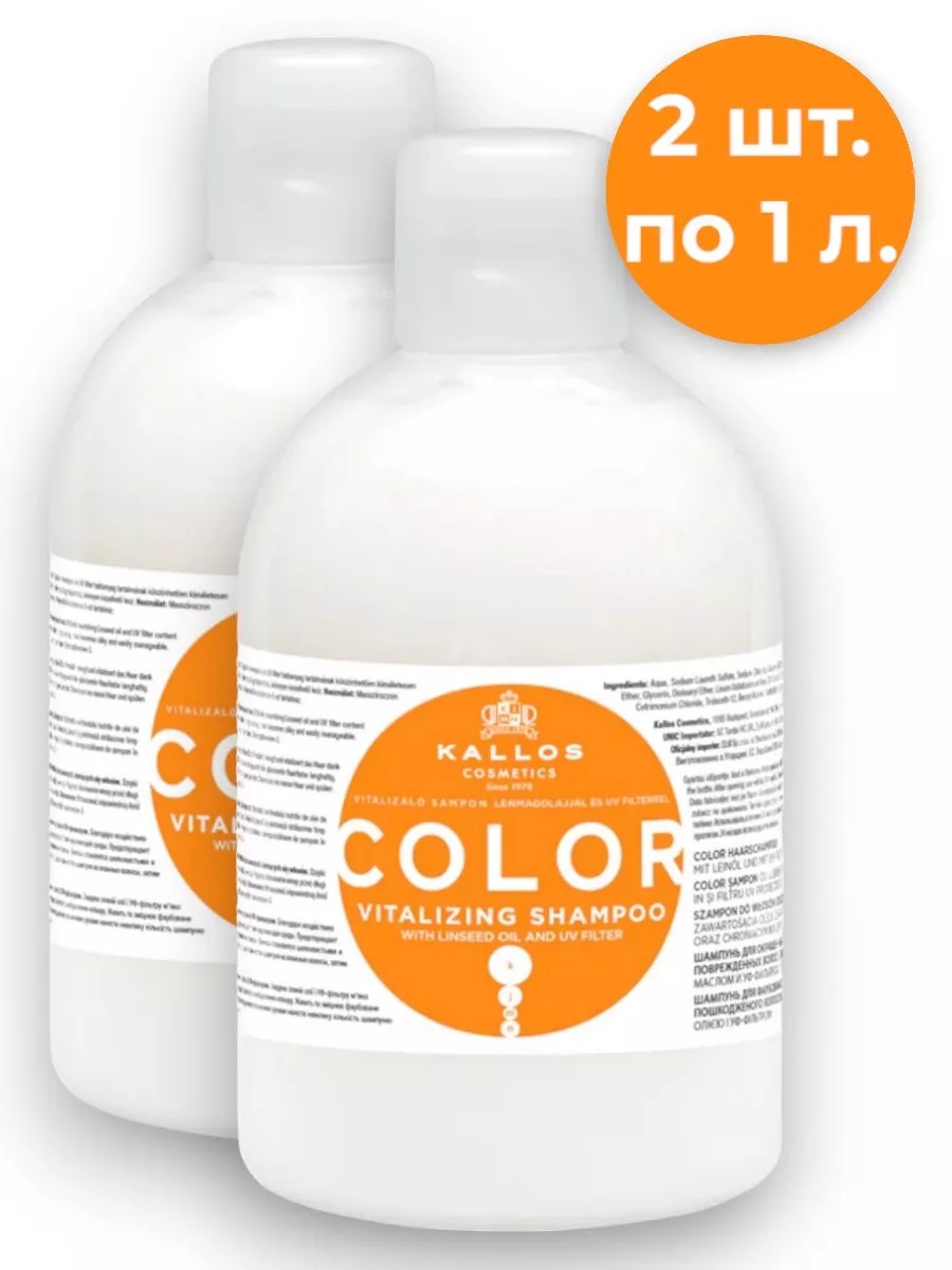 Набор состоит из 2 шампуней по 1 литру каждый. Шампунь Color - это шампунь с оптимизированной формулой для ухода за окрашенными и поврежденными волосами с льняным маслом и УФ-фильтром. Благодаря воздействию активных компонентов, шампунь мягко очищает и защищает волосы от вредных воздействий окружающей среды. Предотвращает потерю цвета окрашенных волос. Питает и укрепляет окрашенные и поврежденные волосы. В результате волосы становятся шелковистыми и послушными. Минимальное содержание сульфатов позволяет использовать данный продукт людям с чувствительной кожей. Товар сертифицирован на территории ЕАЭС.