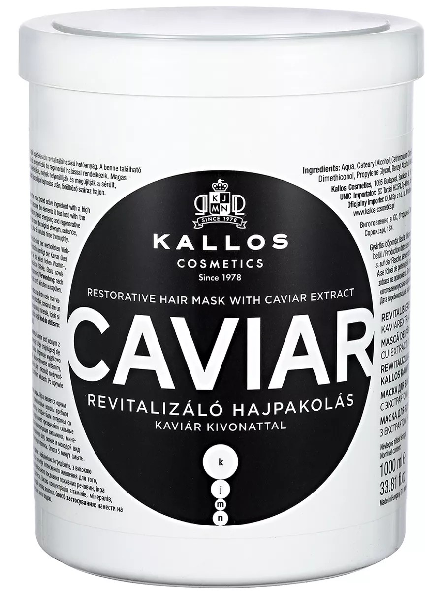 Caviar Mask is a hair restoration mask based on black caviar extract. Caviar is one of the most valuable restorative substances. Damaged, lifeless hair requires intensive nourishment to restore the natural elements that have been lost. The high concentration of vitamins, minerals, fats, and proteins in black caviar can restore hair's original strength and healthy shine. The mask's professional formula revives even the most damaged locks. Directions: Apply a small amount to clean, damp hair, leave for 5 minutes, then rinse with warm water. This product is certified in the Eurasian Economic Union (EAEU).