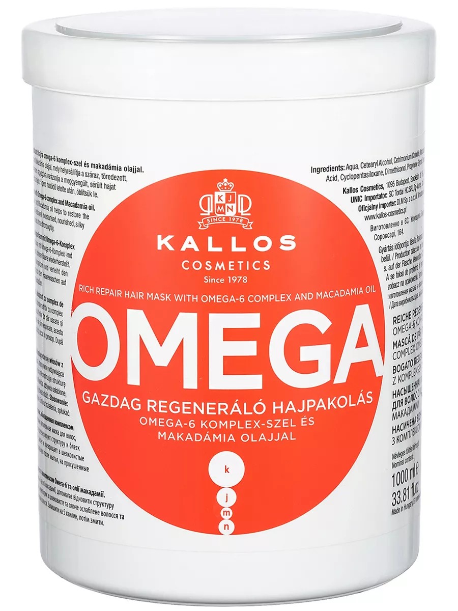 Маска Omega - это восстанавливающая маска для безжизненных, тусклых и секущихся волос. Глубоко восстанавливающая, питательная маска с комплексом Омега-6 и маслом макадамии прекрасно питает и восстанавливает структуру и блеск сухих, секущихся, безжизненных волос. В результате использования маски, волосы становятся упругими, мягкими, здоровыми и блестящими. Способ применения: нанести небольшое количество маски на чистые влажные волосы, выдержать 5 минут затем смыть теплой водой. Минимальное содержание сульфатов позволяет использовать данный продукт людям с чувствительной кожей. Товар сертифицирован на территории ЕАЭС.