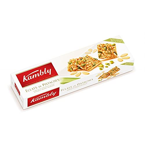 A fine biscuit with caramelized pistachios and almonds. INGREDIENTS ALMONDS 26 , sugar, WHEAT flour, PISTACHIOS 10 , caramelized sugar 6 , coconut fat, potato starch, glucose syrup, WHEAT starch, BUTTER, sunflower oil, EGG white powder, skimmed MILK powder, baking honey, emulsifier (SOYA lecithins), whole MILK powder, salt, raising agent (ammonium hydrogen carbonate).Pistachio Nuts 80g. KAMBLY. Dry Biscuits. Biscuits, Pastries. Sweet Groceries. Un biscuit fin avec ses pistaches et amandes caramelisees. INGRÉDIENTS AMANDES 26 , sucre, farine de BLE, PISTACHES 10 , sucre caramelise 6 , graisse de coprah, fecule de pomme de terre, sirop de glucose, amidon de BLE, BEURRE, huile de tournesol, blanc d'OEUF en poudre, LAIT ecreme en poudre, miel de patisserie, emulsifiant (lecithines de SOJA), LAIT entier en poudre, sel, poudre a lever (carbonate acide d'ammonium).Éclats De Pistaches 80G. KAMBLY. Biscuits Secs. Biscuits, Pâtisserie. Epicerie Sucrée.