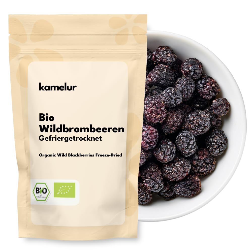 Kamelur 500g of freeze-dried organic wild blackberries - crisp and fruity organic dried blackberries with no additives - in biodegradable packaging