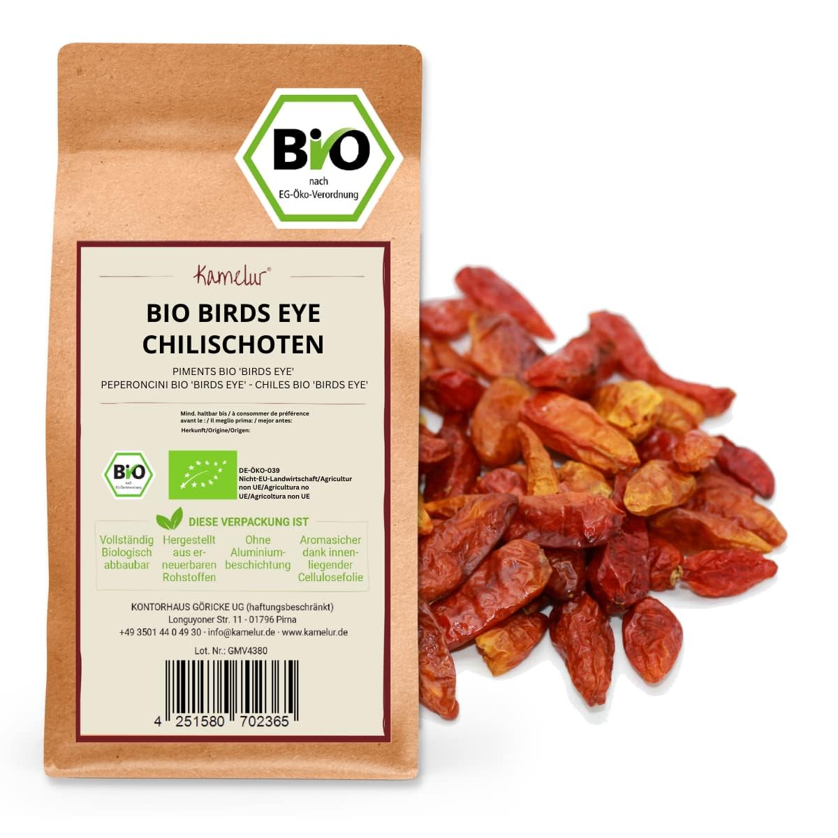 Kamelur Bio Birds Eye Chili (1 kg) Spicy spice from organic farming