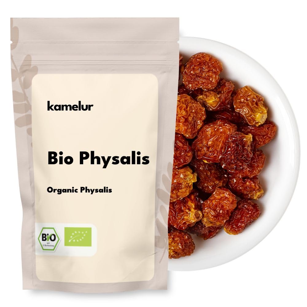 BUY NOW: If you want our physalis delivered to you quickly and reliably, then click "Buy this item." USES: Physalis is a fruity alternative to cranberries and raisins. They can add a special tangy touch to morning muesli, a wide variety of pastries, desserts, or fresh salads. You can also snack on them on their own. VITAMIN POWERHOUSE: Even dried, our organic physalis is rich in vitamins and minerals. Its high content of vitamin C, B vitamins, and beta-carotene is particularly noteworthy. In addition, the orange fruits are rich in potassium, calcium, and iron. AROMATIC: These dried fruits are characterized by their rich, fruity flavor with a pleasant, slightly tart and bitter note. They are also wonderfully sweet and juicy. 100 NATURAL: you get our physalis (also called Cape gooseberry, Inca berry or Andean berry) from certified organic farming.