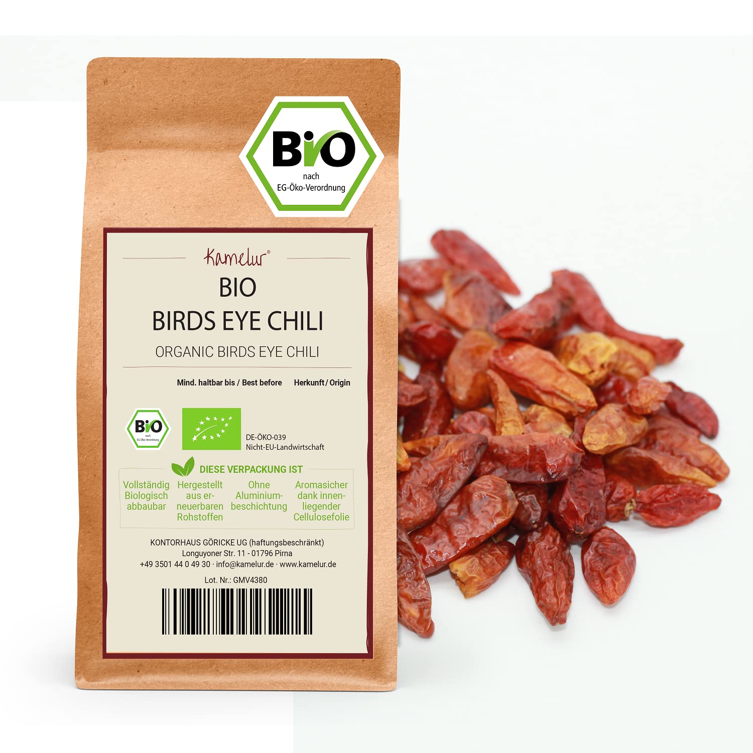 Kamelur organic 'Birds Eye' whole chilli pods gently dried no additives 120 000 Scoville in organic packaging