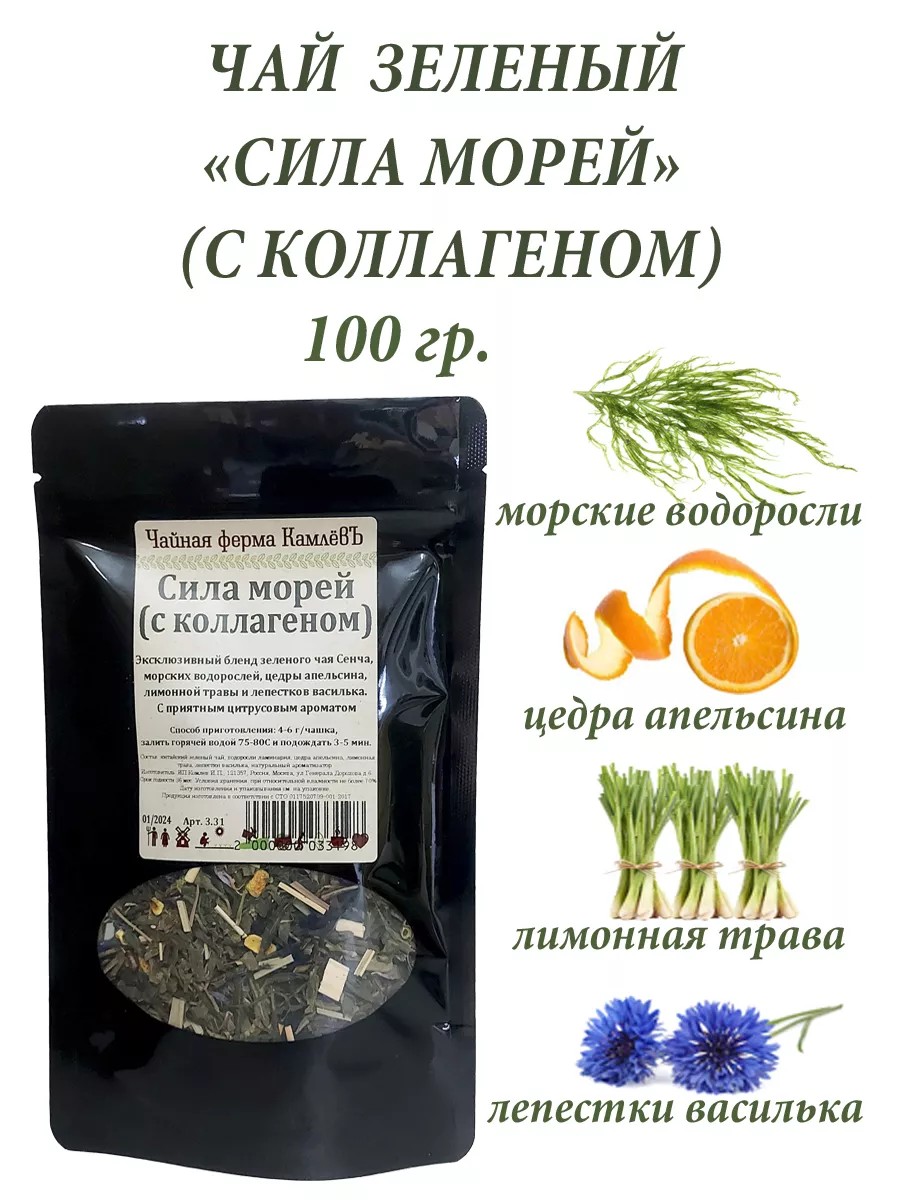 Чай "Сила морей" сочетает в себе все вышеупомянутые полезные свойства чая и водорослей ламинарии. Благодаря морским водорослям, этот напиток обогащен микроэлементами и витаминами, которые положительно влияют на здоровье и общее самочувствие. Цедра апельсина и лимонная трава добавляют освежающий цитрусовый акцент, делая употребление чая "Сила морей" не только полезным, но и приятным.