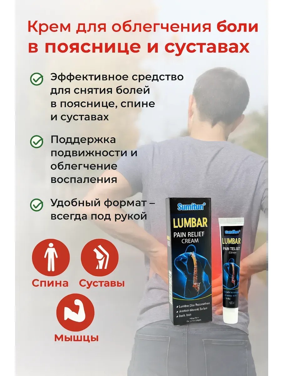 Крем для облегчения болей в пояснице и суставах – это современное средство, созданное для эффективной поддержки опорно-двигательного аппарата и снятия неприятных ощущений, связанных с усталостью, перенапряжением мышц и дискомфортом в области поясницы, спины и суставов.