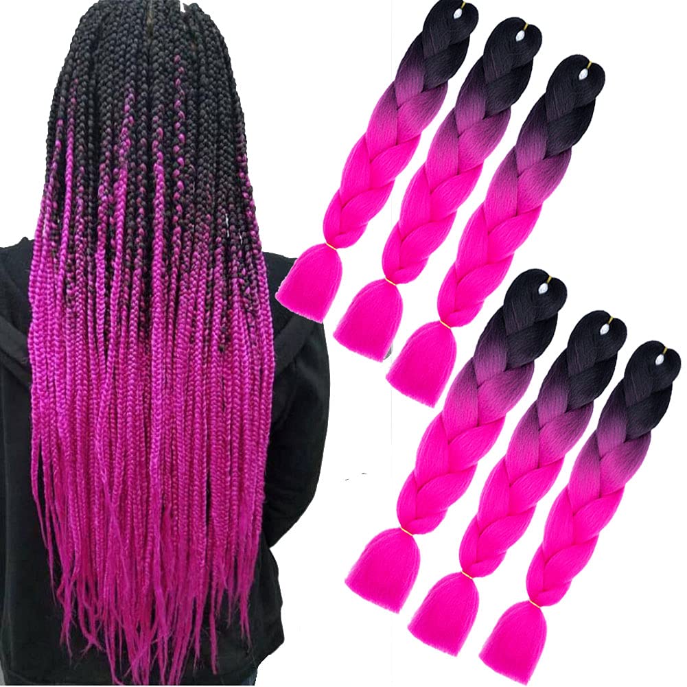 Kanekalon Kunsthaar Haar, Braids Extensions rosa ombre 6 Stück Jumbo braids Haarverlängerung 24" Afro Zöpfe Box Braid Für crochet Haar Zum Einflechten (schwarze rose) B7