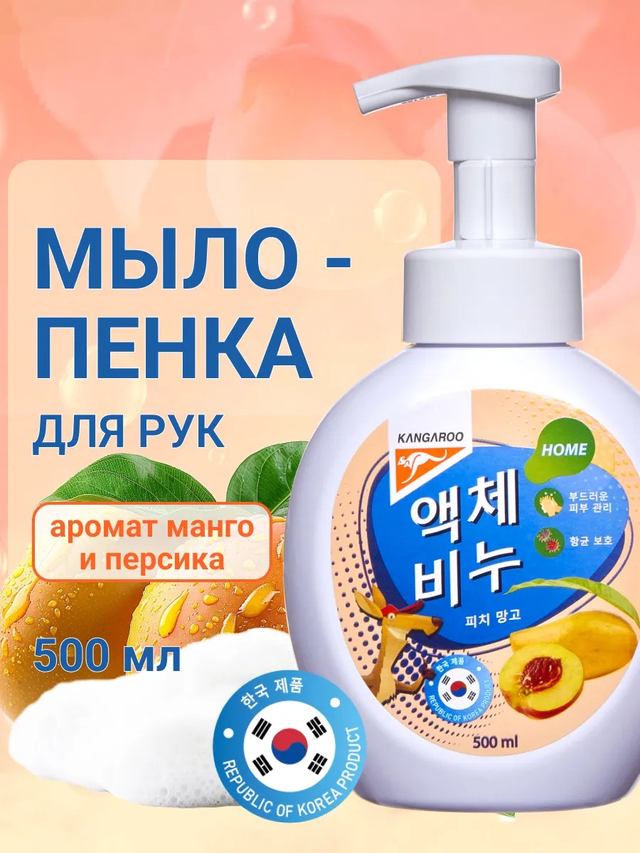 KANGAROO Жидкое мыло-пенка с ароматом персика и манго 500мл