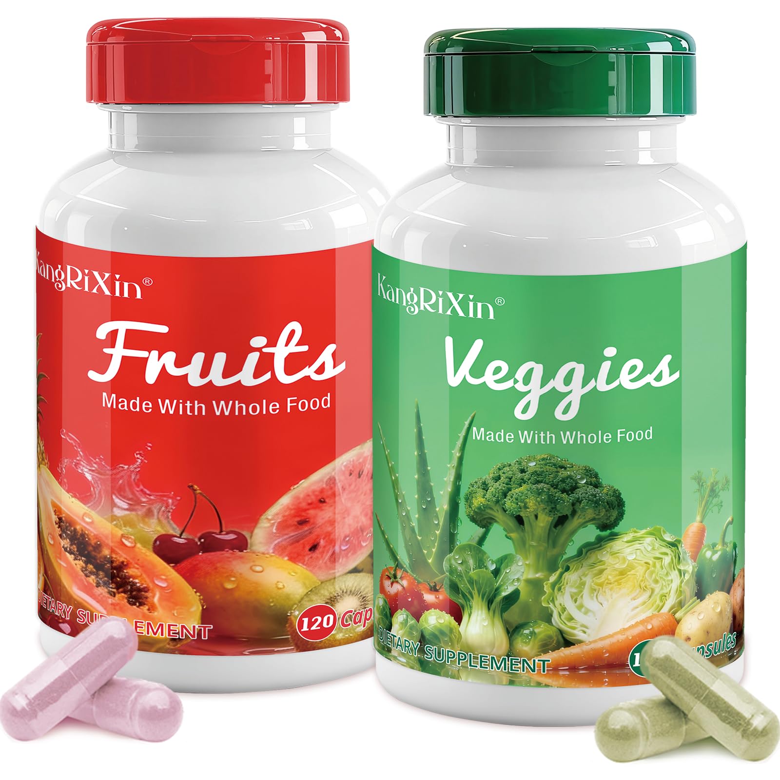 KangRiXin Fruits and Veggies Supplements Whole Fruit and Vegetable Ingredients for Women Men and Kids - 120 Fruits Capsules 120 Veggies Capsules - 2 Sets