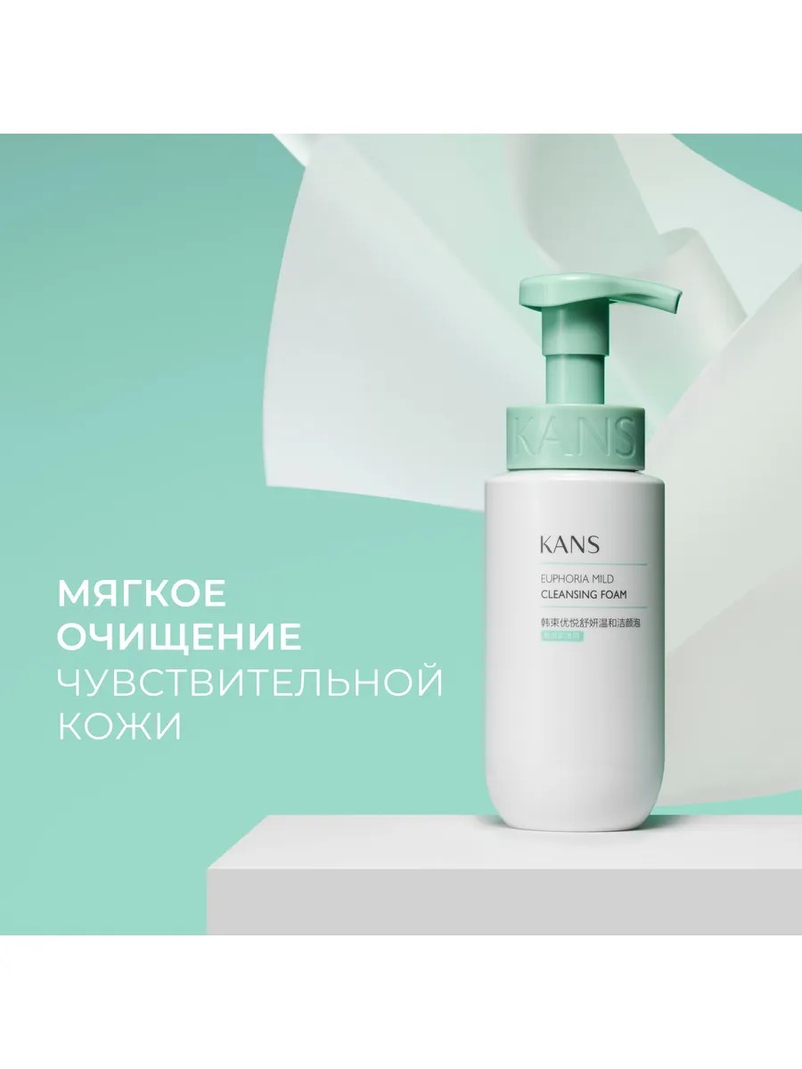 Пенка для лица KANS Euphoria Mild Cleansing Foam из линейки «Зелёная капсула» – мягкое средство для бережного очищения и умывания чувствительной кожи лица, склонной к покраснениям, раздражениям, аллергическим реакциям, проявлениям купероза и с другими признаками нарушения барьерных функций кожи.