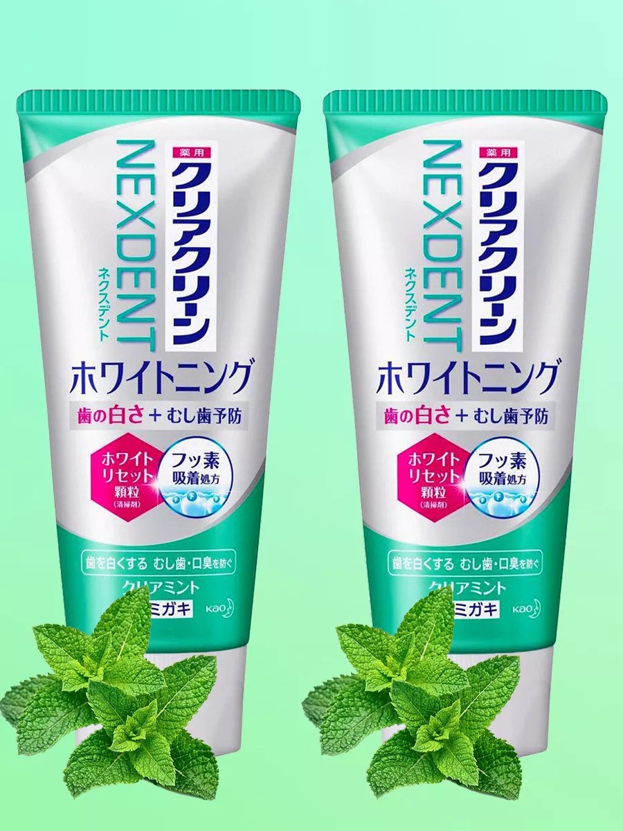 Лечебно-профилактическая зубная паста с микрогранулами KAO Clear Clean Nexdent Whitening Clear Mint, отбеливающая, свежий мятный вкус, набор: туба 120гр. х 2шт.