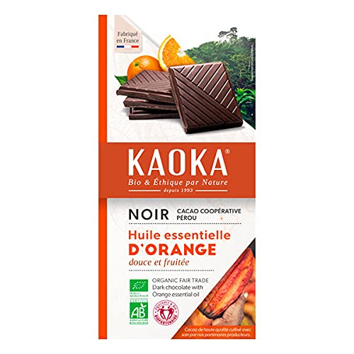 Orange dark chocolate 55 cocoa. 100g bar.Dark Chocolate Orange Bar 100g. Kaoka. Gourmet dark chocolate bar. Organic chocolate. Sweet grocery store. Chocolat noir orange 55 cacao. Tablette de 100 g.Tablette Chocolat Noir Orange 100G. Kaoka. Tablette noir gourmande. Chocolat bio. Epicerie sucrée.