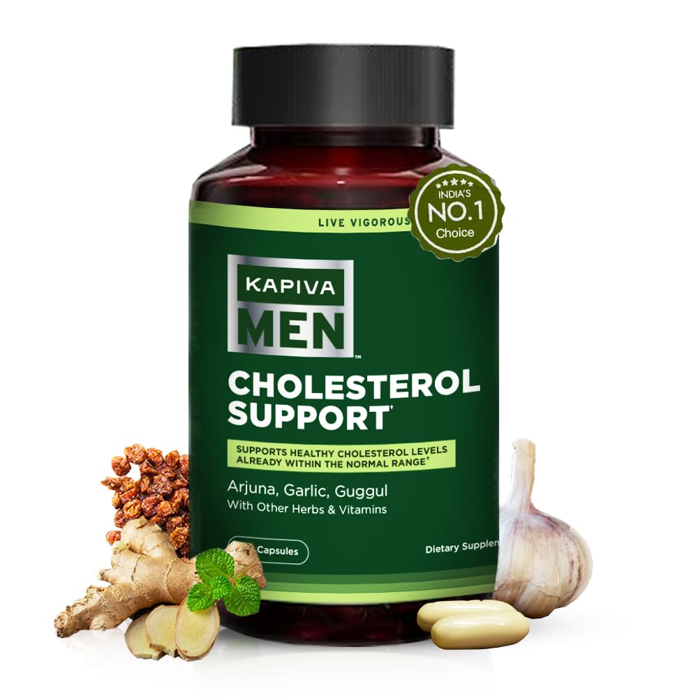 Kapiva Cholesterol Lowering & Heart Health Supplement | Plant Sterols, Niacin, Arjuna, Garlic & Guggul | Natural Herbal Vitamins for Healthy Cholesterol Support | 60 Capsules 60 Count (Pack of 1)