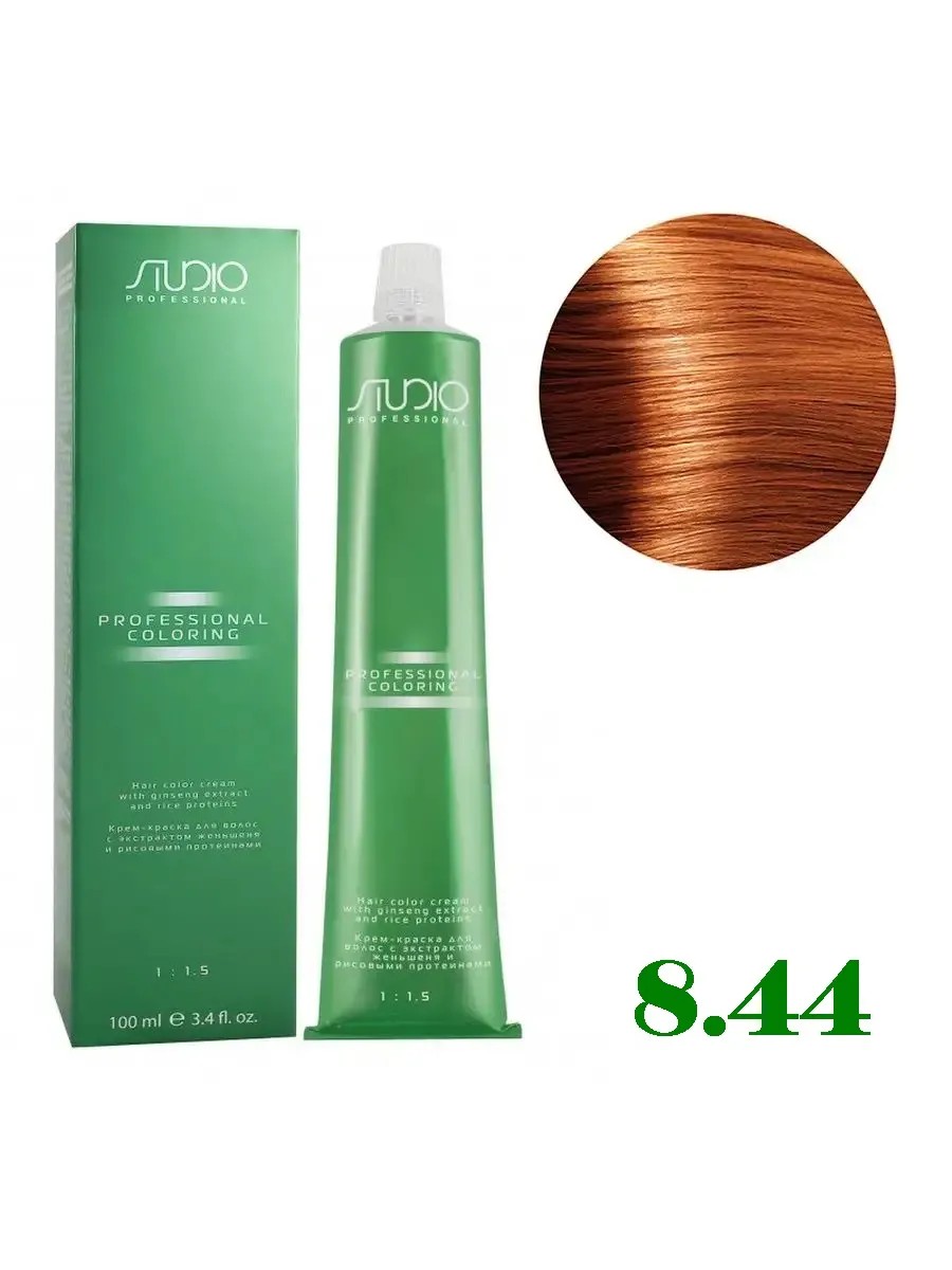 | Полное наименование товара | Kapous Studio Крем-краска для волос Studio, с рисовыми протеинами, тон №8.44, Светлый интенсивный медный блонд, 100мл |