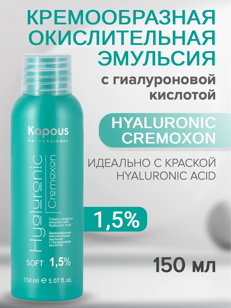 Hyaluronic Cremoxon oxidizing emulsion with hyaluronic acid and mineral oil is intended for use with the Hyaluronic Acid series dye and Kapous bleaching products. Directions for use: Follow the instructions for use of the Hyaluronic Acid series dye and Kapous bleaching products.