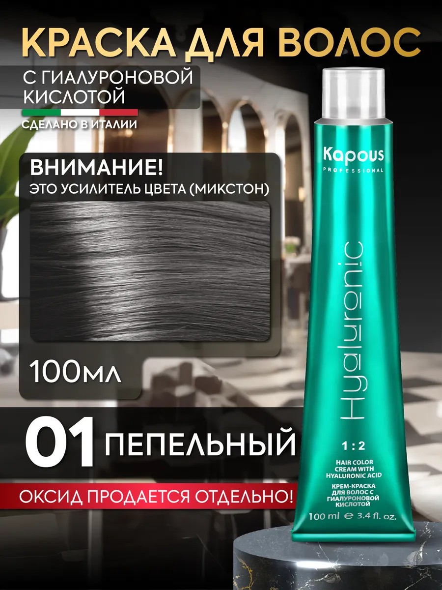 Профессиональная стойкая краска микстон для волос Kapous Professional с аммиаком и гиалуроновой кислотой в оттенке Усилитель Пепельный 01 бренда Капус. Производство Италия.