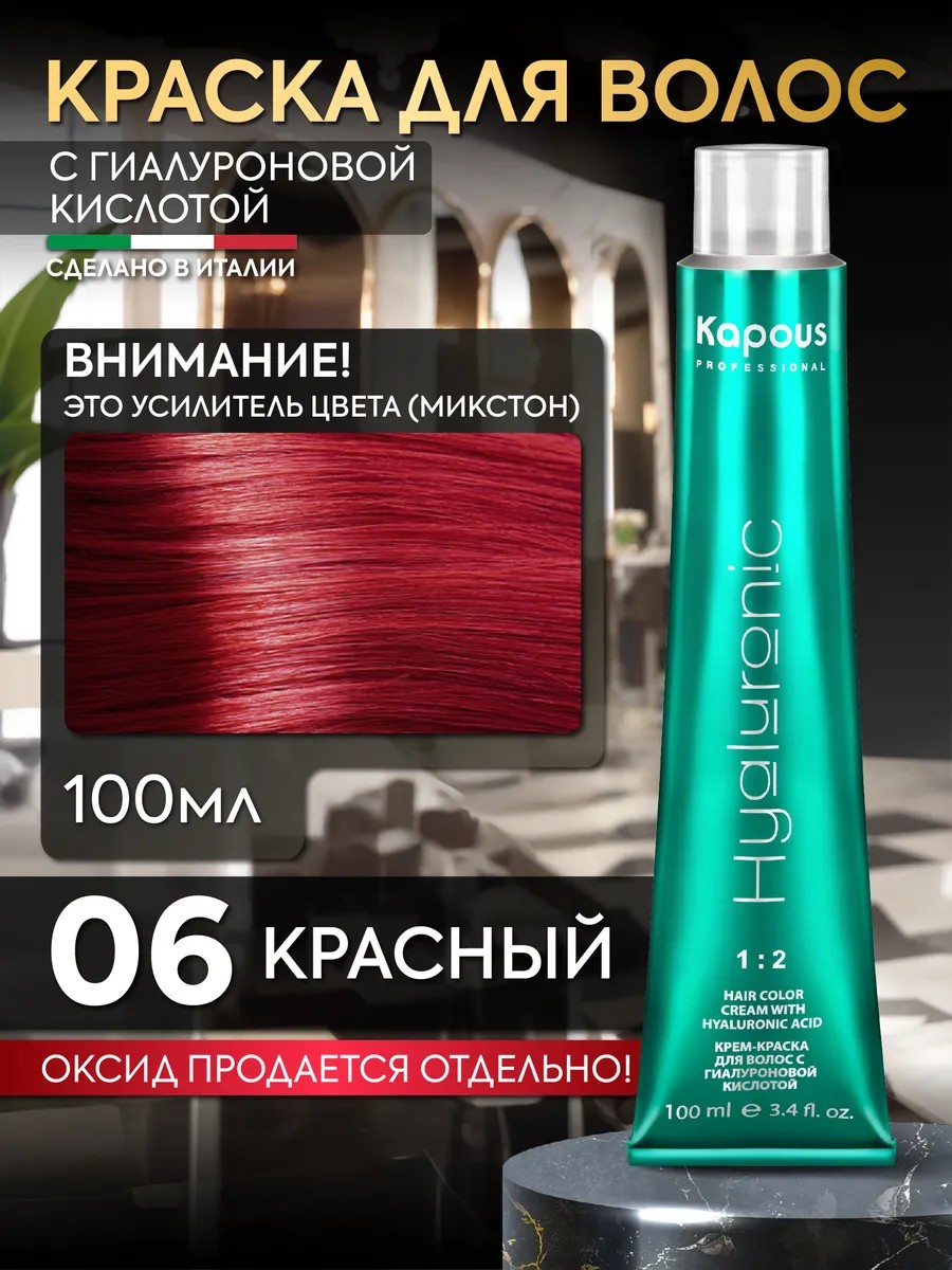 Профессиональная стойкая краска микстон для волос Kapous Professional с аммиаком и гиалуроновой кислотой в оттенке Усилитель Красный 06 бренда Капус. Производство Италия.