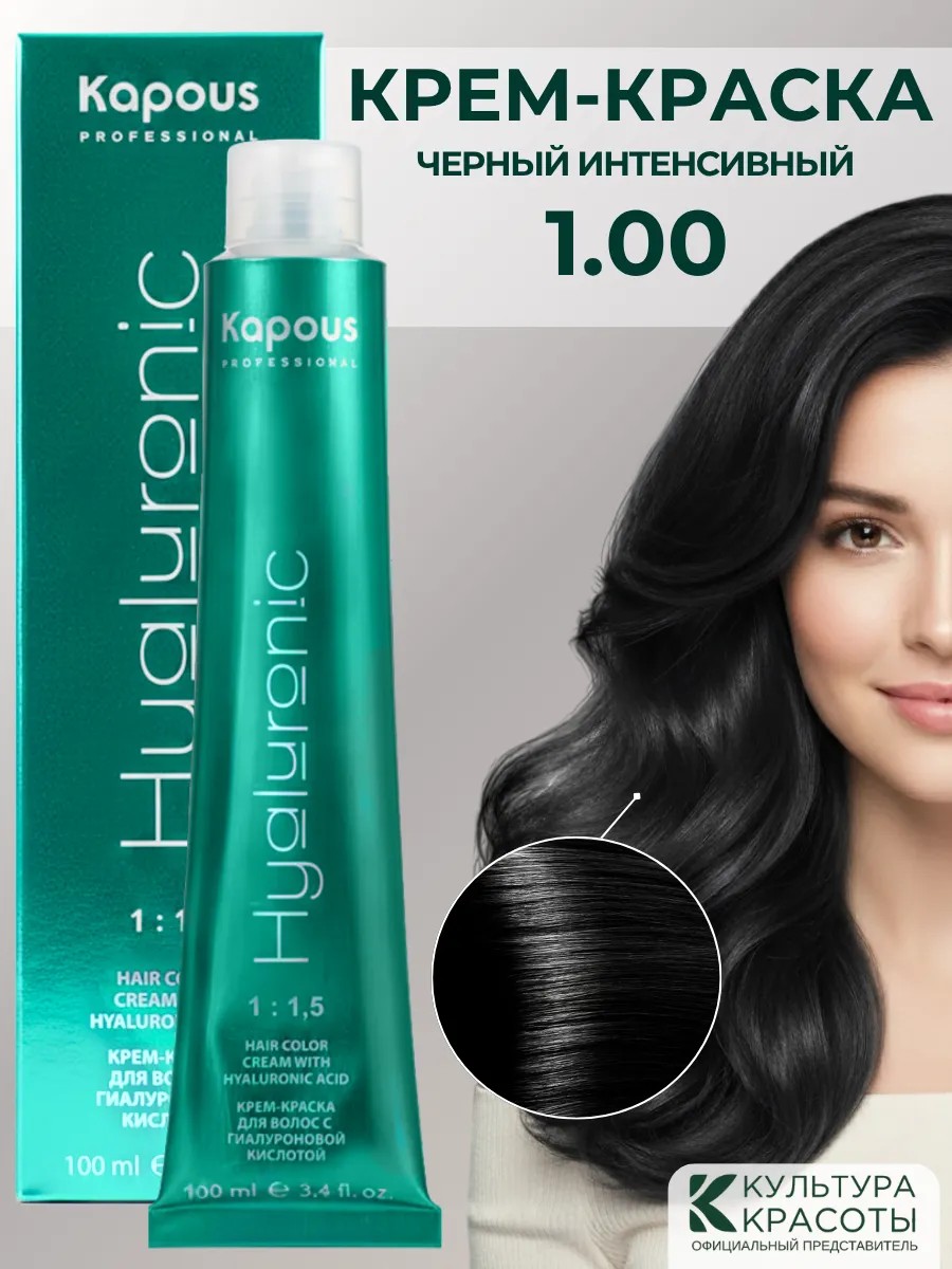 Kapous Крем краска для волос Hyaluronic 1.00 черный интенсивный