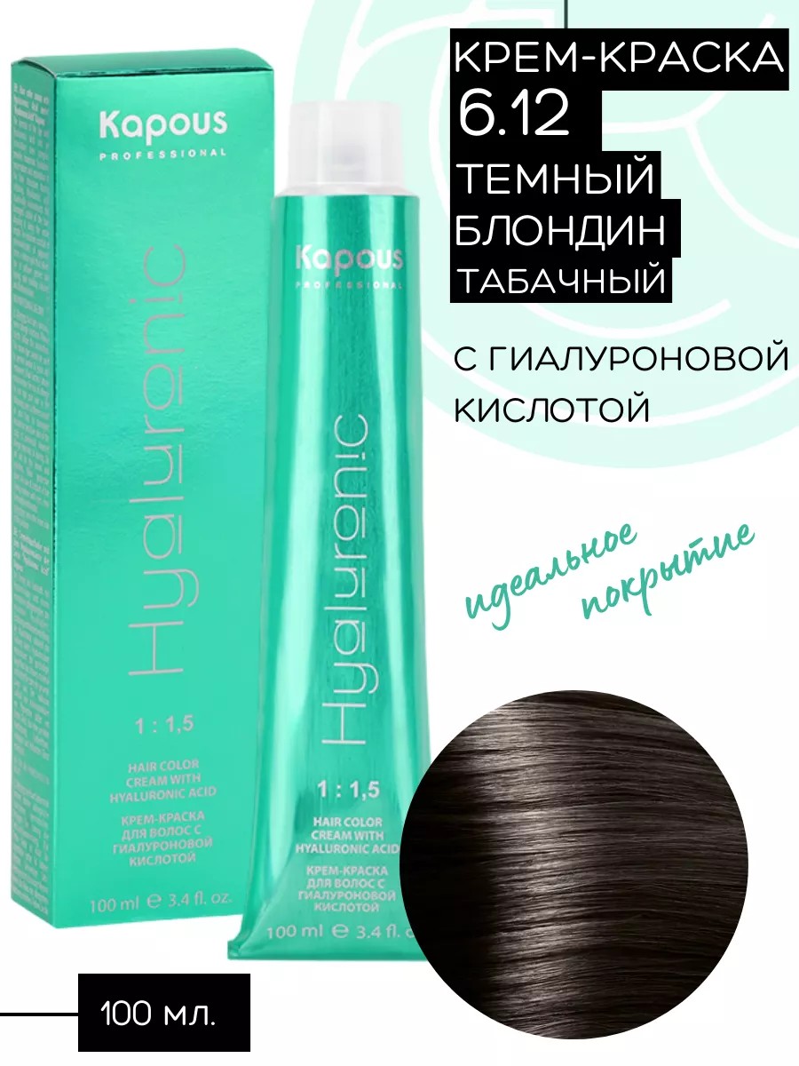 Kapous Крем-краска Hyaluronic 6.12 Темный блондин табачный