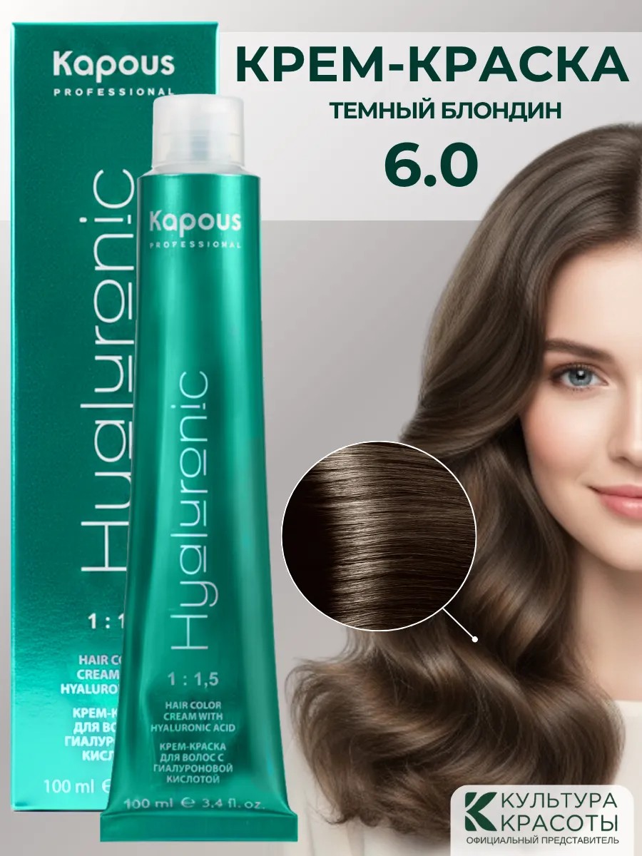 Kapous Hyaluronic cream-paint 6.0 Dark blonde