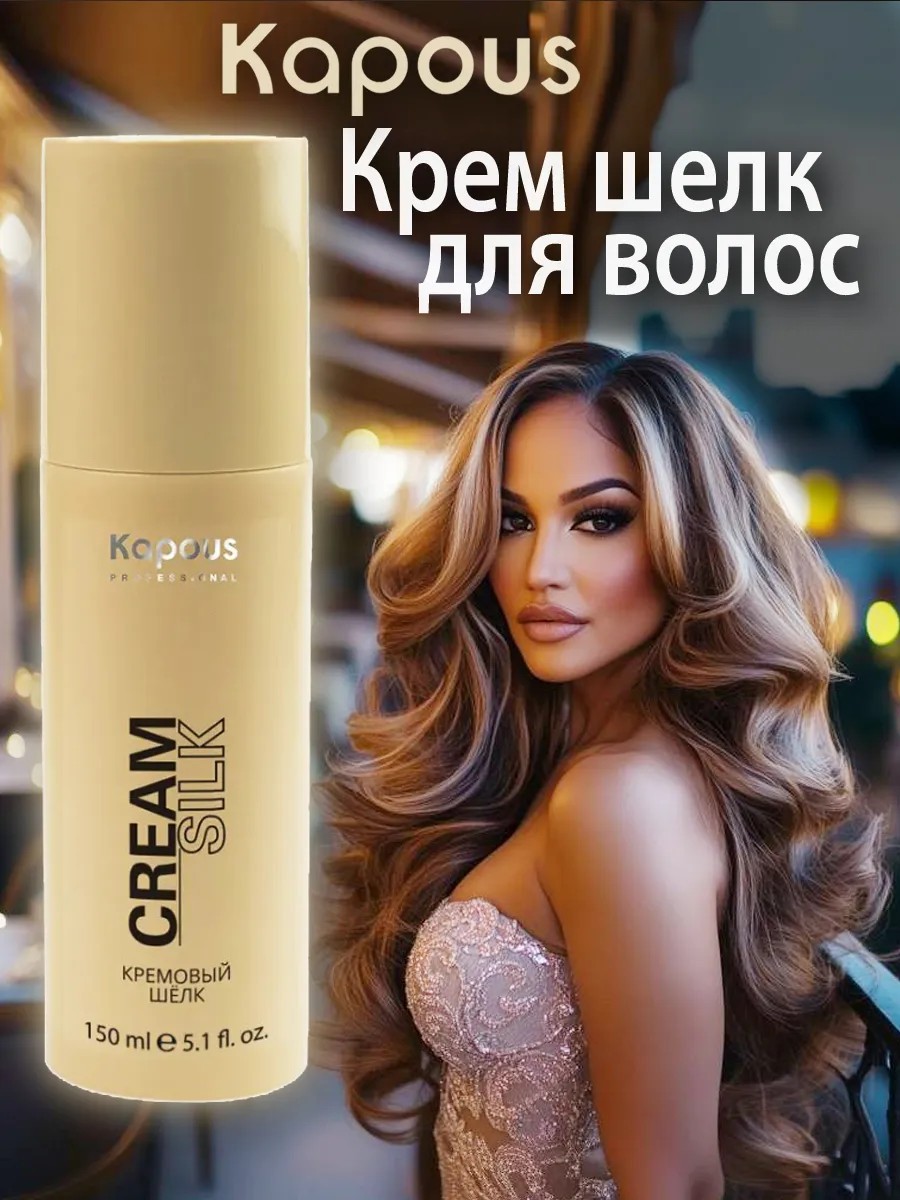 Looking for a professional leave-in hair cream? You've found it! Kapous Cream Silk Hair Cream is truly a royal hair treatment. Your hair will not only be healthy and well-groomed, but it will also smell wonderful! The smell is simply delightful! This cosmetic product is specially designed for hair to provide deep restoration and hydration, giving it silkiness and shine from ends to roots. Thanks to its leave-in formula, the cream ensures long-lasting moisture and nutrient retention, making hair healthier and more manageable. It helps with split ends, frizz, static, and hair breakage. Suitable for all hair types, including curly and wavy hair. It works as a leave-in hair conditioner, heat protectant, and leave-in cream conditioner and hair mask. Kapous Cream Silk is a professional multifunctional product with a lightweight formula that doesn't weigh hair down or leave it greasy. Ideal for any stage of hair care: base styling, styling, and finishing. This nourishing, restorative, and strengthening lightweight cream is suitable for all hair types. This hair cream adds elasticity and instantly smoothes the hair surface, protecting it from mechanical damage and aggressive environmental factors. Cottonseed oil, thanks to its high Omega-6 content, provides density and prevents moisture loss, softens hair and has a soothing effect on the scalp, seals the cuticle, provides an antistatic effect, and adds shine. Vitamin B3 strengthens, restores, and promotes hair growth. UV filters protect against the harmful effects of the sun's rays. Feel like a queen!