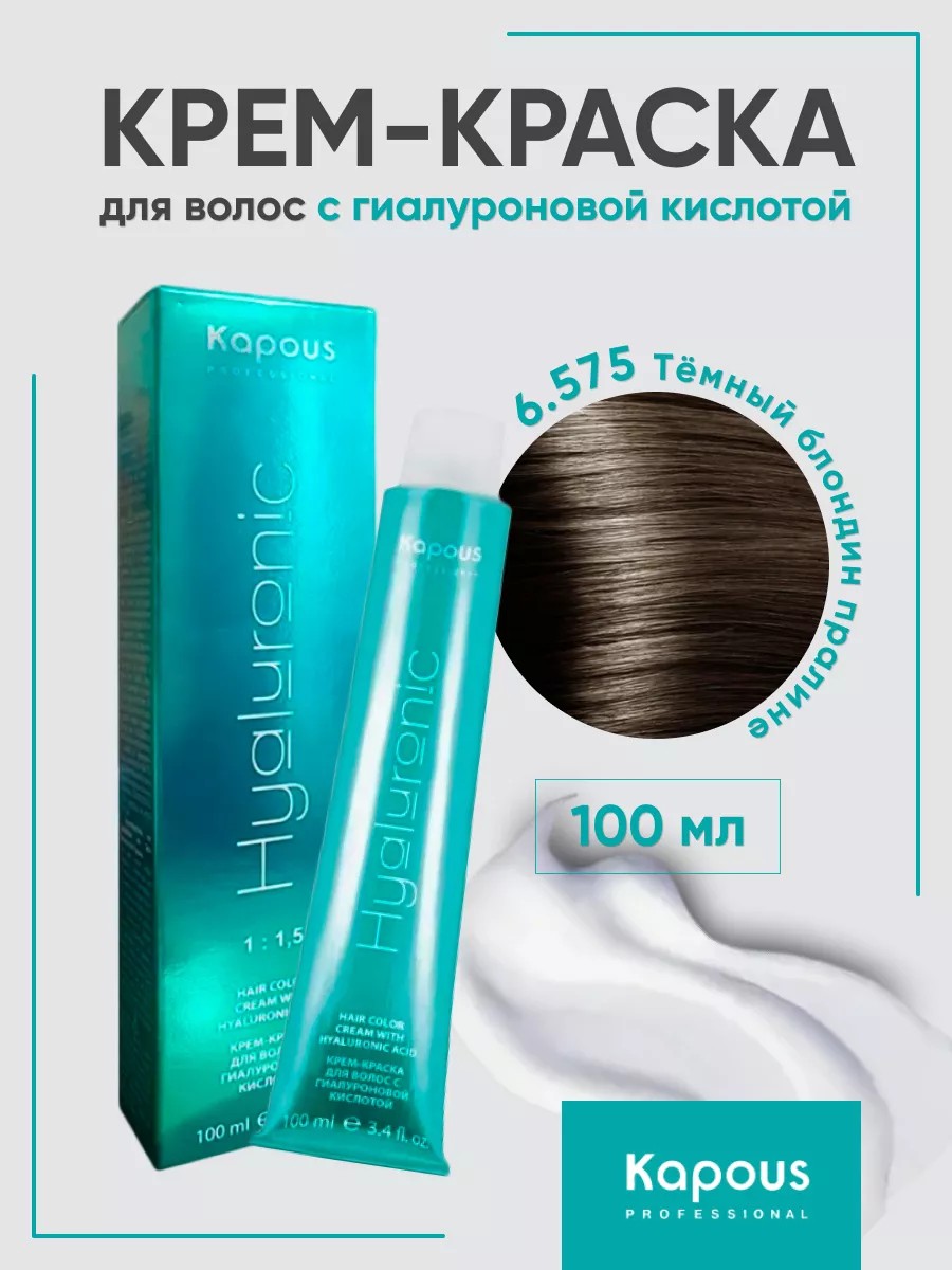 Professional hair dye from Kapous features a new, revolutionary Hyaluronic Acid formula, containing hyaluronic acid and a conditioning complex that provide hydration, preservation, and restoration of hair structure during coloring.