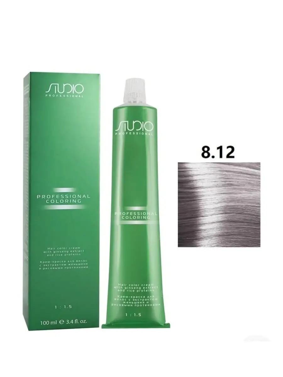 Studio Professional Cream Hair Dye by Kapous with Ginseng Extract and Rice Proteins. This cream hair dye with a balanced system of ingredients ensures long-lasting color results on natural, gray, and previously colored hair. The updated formula includes ginseng extract and rice proteins, moisturizing and caring ingredients that ensure maximum color durability and shine, UV protection, and exceptional hair quality. The dye gently colors the hair, reliably protecting its structure along the entire length, imparting a well-groomed appearance, multifaceted shine, and a healthy glow for a long time. Application: Preliminary diagnosis before coloring. First, it is necessary to determine the color depth of your natural hair and the percentage of gray hair. To determine your hair color, use the natural shade scale in the palette. Important: If the diagnosis and determination of your original hair color are inaccurate, the hair color after coloring may not match the one selected from the palette 100%. Hair coloring with Studio Professional cream dye. In a non-metal container, mix the cream dye with ActiOx oxidizing emulsion in a 1:1.5 ratio, for example, 50 g of dye and 75 g of the required percentage of oxidizer (depending on the original hair color). When using cream dyes in ultra-light shades, mix the dye with ActiOx in a 1:2 ratio (50 ml of cream dye and 100 ml of oxidizing emulsion). When coloring hair with Studio Professional cream dye, the development time is 30-55 minutes, for ultra-light shades - 50-55 minutes (depending on the reflex row), otherwise the dye will not develop fully, and the result will not be durable. Please note! The colors and shades shown may differ from the actual ones depending on your monitor settings. The kit includes only a tube of dye. OXIDIZING EMULSION IS PURCHASED SEPARATELY!!!