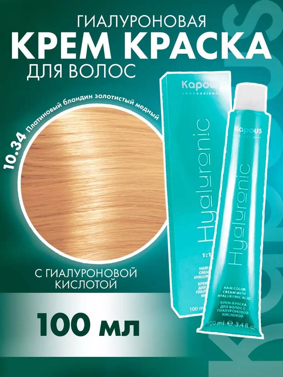 Kapous Professional Краска Hyaluronic 10.34 платиновый блондин золотистый медный
