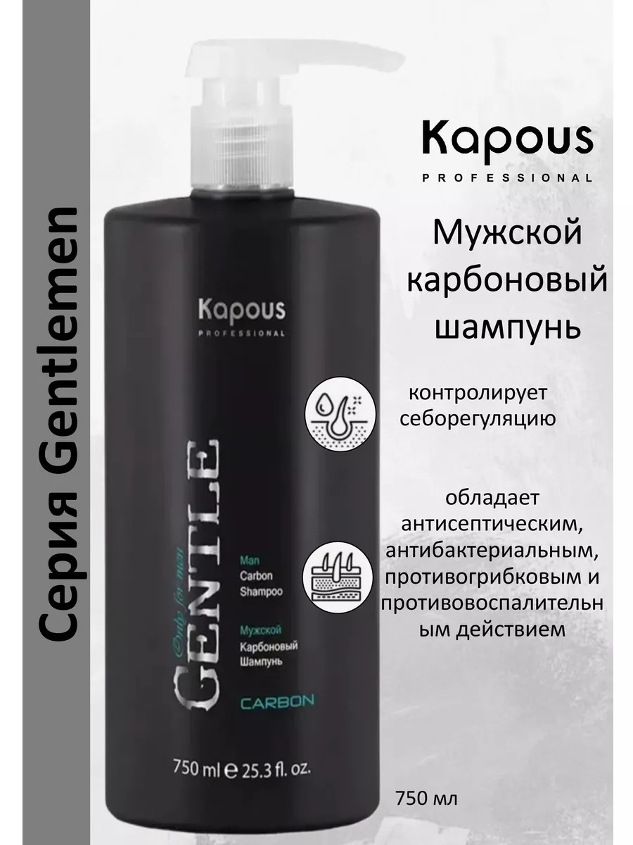 Мужской карбоновый шампунь Kapous Professional, серии Gentlemen, подходит для всех типов волос. Формула мужского шампуня с экстрактом плодов ежевики эффективно регулирует водный баланс кожи головы, контролирует себорегуляцию. Красный сандал в составе мужского карбонового шампуня обладает антисептическим, антибактериальным, противогрибковым и противовоспалительным действием. Придает волосам и коже головы свежесть, предотвращает появление перхоти. Увлажняет волосы, облегчает расчесывание, питает и придает мягкость волосам. Можно использовать как в домашних условиях, так и в работе барбершопов. Шампунь можно использовать не только для мытья волос, но так же для бороды и усов. Способ применения: нанести небольшое количество шампуня на влажные волосы. Вспенить. Оставить на 2-4 минуты, смыть. При необходимости повторить. Мужской карбоновый шампунь от перхоти подходит для ежедневного частого использования.