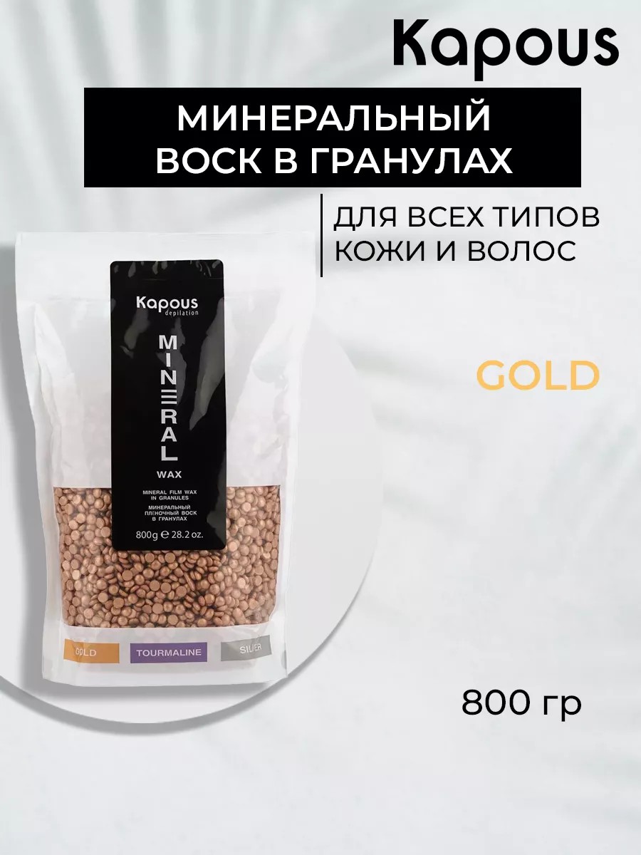 Минеральный плёночный воск в гранулах «Gold», 800 г. Минеральный пленочный воск в гранулах Kapous изготовлен на основе натуральной сосновой смолы и пчелиного воска с добавлением компонентов, обеспечивающих низкую температуру плавления, повышенную адгезивность воска с волосом, высокую пластичность при нанесении. Удаляет любые нежелательные волосы от 1-2 мм. Для всех типов кожи и волос. Перед применением проконсультируйтесь со специалистом. Не наносить на поврежденные участки кожи (раны, ссадины, ожоги).