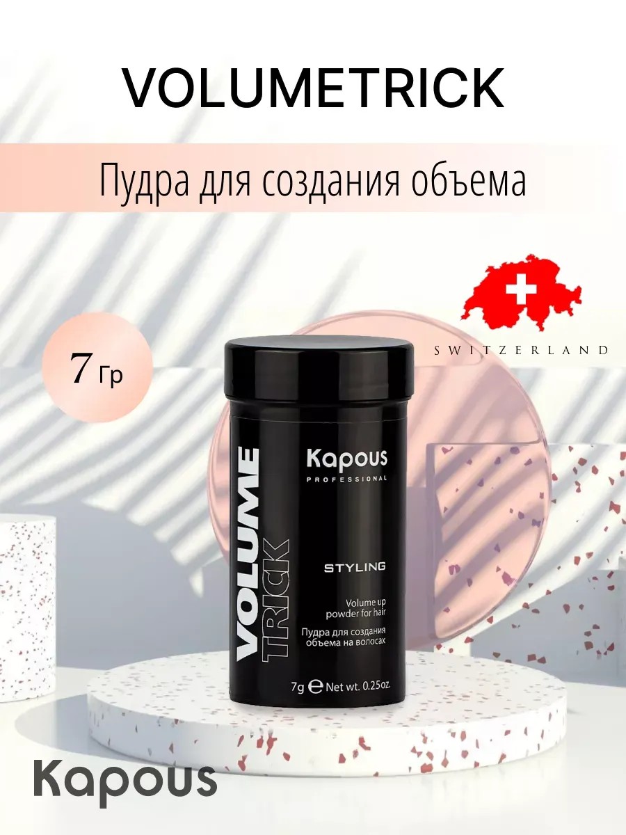 Пудра для создания объема на волосах Volumetrick серии Styling Kapous 7 гр.Невесомая пудра делает волосы более послушными при создании восхитительных объемных причесок и изящных укладок различной сложности. Помогает избежать утомительного начесывания волос и избавляет от обильного использования лака сохраняя объем на длительное время, подходит для волос любого типа и длины. Микрочастицы адсорбируют излишнюю сальность на коже головы, придавая волосам опрятный матовый вид.Способ применения: После завершения работы с феном или «утюжками» небольшое количество пудры нанести на сухие волосы, разделенные по проборам, начиная с прикорневой зоны, деликатно втереть. При необходимости распределить по всей длине волос. Для еще большего объема встряхнуть непосредственно волосы. Может использоваться несколько раз для достижения максимального эффекта. Не вычесывать. Не оставляет никаких следов и смывается при мытье головы.