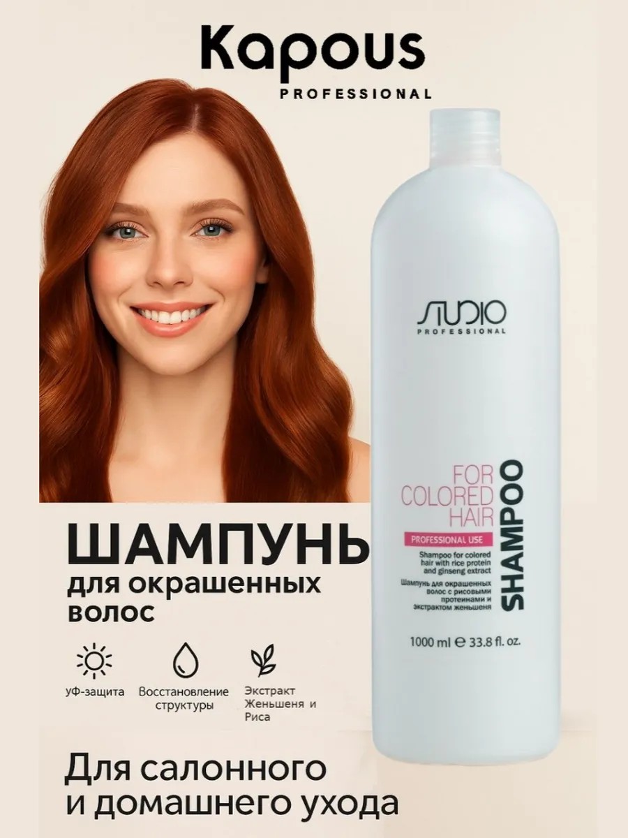 Kapous is a professional, daily-care shampoo for color-treated hair with rice proteins. This care product is suitable for both women and men who pay special attention to their hair. Kapous shampoo will help protect color-treated hair from the harmful effects of UV rays, prevent color fading, and preserve the vibrancy of color. It also strengthens hair after chemical treatments. Rice proteins provide essential care, enriching it with vitamins and minerals, promoting healthy growth and strengthening. Ginseng extract helps restore damaged areas after coloring, strengthen split ends, and nourish the roots. The shampoo's ideal formula will fill your hair with strength and shine, leaving it silky and smooth without straightening. It is also suitable for teenagers and for all hair types—from oily to dry, from fine to thick, from straight to curly. It does not dry out even sensitive scalps. The large 1-liter bottle makes our product economical. It's a wonderful gift for a girl. Kapous is a unique brand renowned for its high-quality strengthening cosmetics. With it, you'll easily achieve salon-quality results from the first use, ensuring perfect combing and beauty. Purchase this shampoo with its pleasant aroma and magical texture, and treat your hair to caring, moisturizing care and protection from harmful effects every day. Create a perfect, beautiful look with Kapous shampoo!