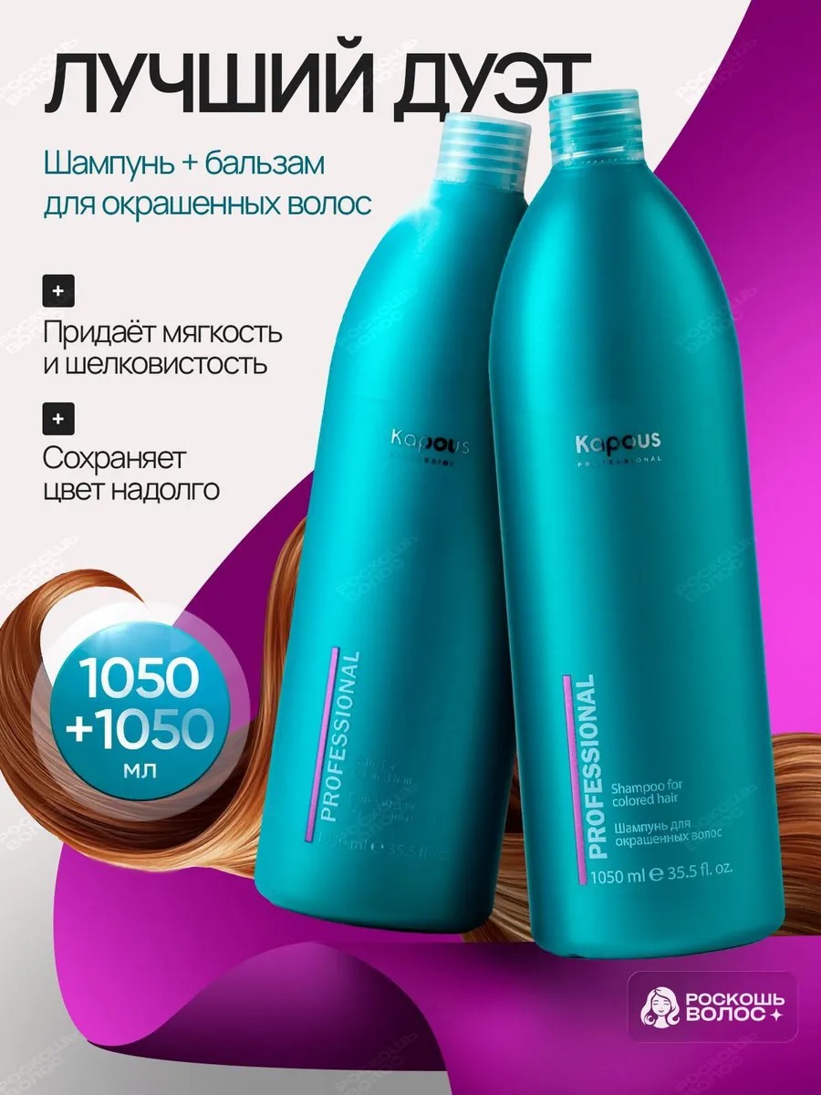 Профессиональный набор шампунь и бальзам для волос Kapous Professional по 1000 мл — это отличное решение для поддержания красоты и здоровья волос. Этот деликатный набор не только для окрашенных, но и для всех типов волос, предназначенный для ежедневного применения. Лимонен в составе незаменим для жирных волос, этот компонент деликатно очищает кожу голову без чрезмерной сухости, не оставляет ощущение сальности, при этом является средством растительного происхождения, основной компонент - масло апельсиновой цедры (до 80-90%)). В состав kapous шампунь для волос женский входит антиоксидант и способствует обновлению клеток, обогащена кератином, который способствует восстановлению структуры волос, уплотняет, возвращая им гладкость и эластичность. Кондиционер - ополаскиватель подходит для осветлённых волос, благодаря своему составу. Пантенол препятствует обезвоживанию и ломкости, обеспечивает протекцию волос при термической укладке. Формула продукта капус способствует восстановлению структуры, увлажняет, уплотняет, возвращает гладкость и эластичность. Результат от применения набора – это долгий насыщенный цвет, здоровая кожа головы, непревзойденный объём, густые блестящие волосы по всей длине. Обогащен комплексом активных ингредиентов – маслом макадамии для глубокого питания, образуют защитную пленку на волосах и придают блеск, облегчает расчесывание, термическую сушку и укладку. Эффективен для сухих, поврежденных и окрашенных (мелированных, осветленных, тонированных или обесцвеченных), а также вьющихся волос. Средство подходит для ежедневного применения для косметического - салонного и для домашнего ухода, бани, душа. Итальянские товары бренда Kapous - это прекрасный подарок любимой девушке, женщине, так и дорогому мужчине на 14 февраля-день святого Валентина, 8 марта, день рождения!