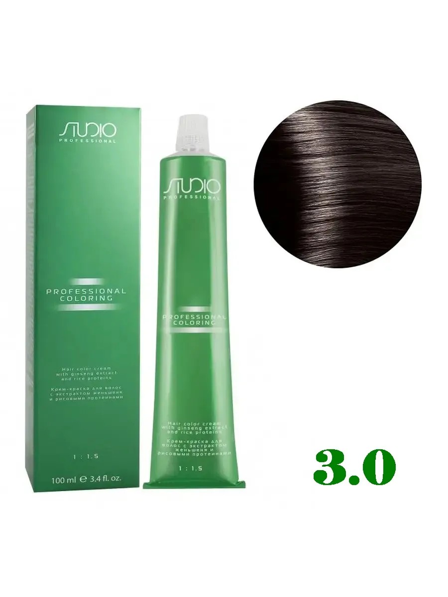 | Полное наименование товара | Kapous Studio Крем-краска для волос Studio, с рисовыми протеинами, тон №3.0, Темно-коричневый, 100мл |