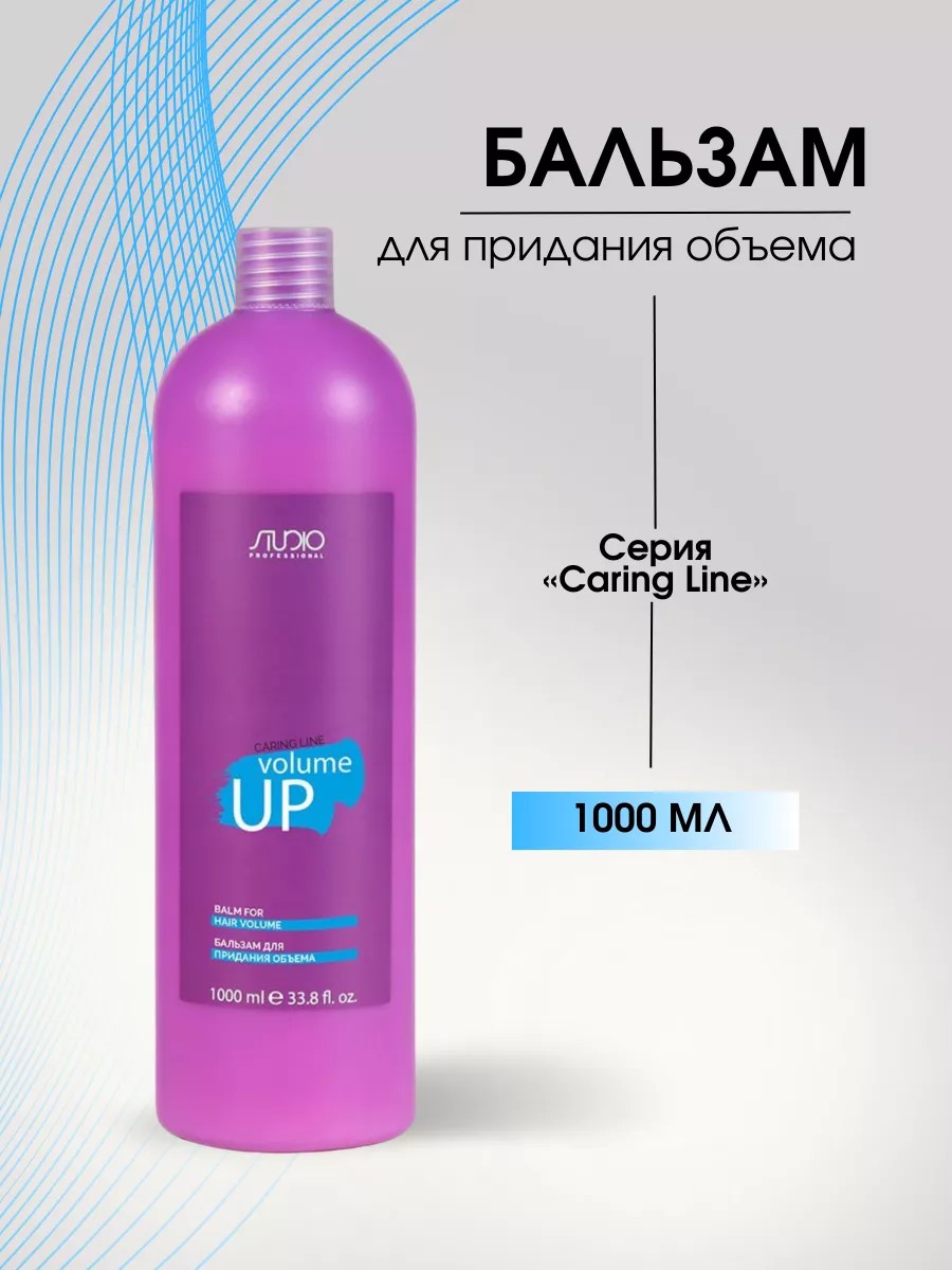 Studio Professional Бальзам для придания объёма волосам Volume Up 1000 мл. Производство Италия. Объем - обязательный элемент красивых волос. Тонким волосам, как правило, не хватает объема, особенно у корней. Из-за этого они выглядят тусклыми и безжизненными. Бальзам серии Caring Line предназначен для деликатного ухода за волосами, благотворно влияет на регенерацию кожи головы и регулирует чрезмерную секрецию сальных желез. Специально разработанная формула с витаминами группы В придает объем даже слабым волосам. Комплексное воздействие фруктовых кислот и пантенола улучшают прочность и эластичность волос по всей длине, предотвращая образование секущихся кончиков. Бальзам не утяжеляет волосы, делает их мягкими и послушными, облегчает расчёсывание. Предотвращает повреждение волос от высоких температур во время использования фена и снимает статическое электричество. Применение: нанести необходимое количество бальзама на чистые влажные волосы, равномерно распределяя, оставить на 3-5 минут, смыть теплой водой.