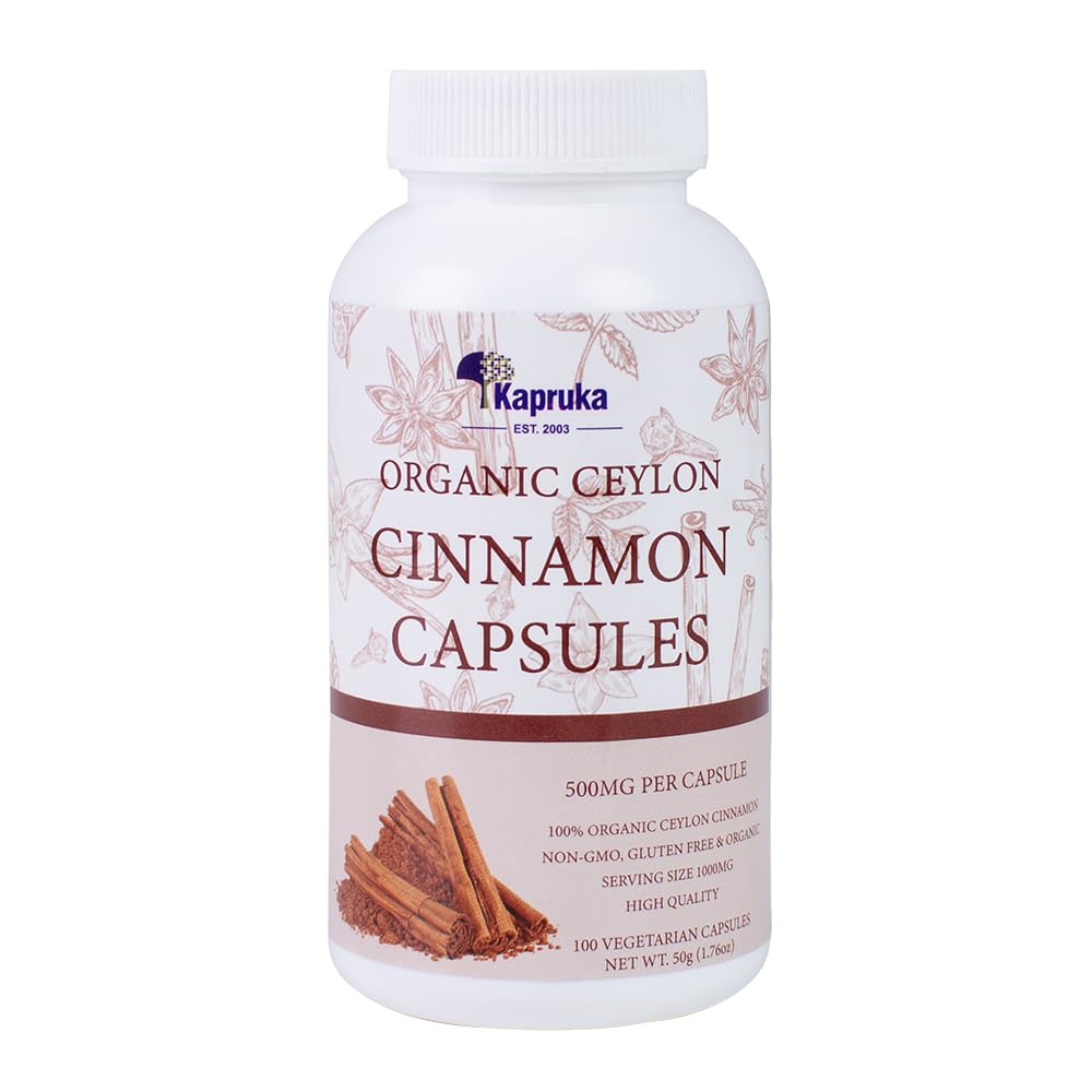 No Unwanted Additives : Our Ceylon Cinnamon capsules are proudly made without any artificial colors, flavors, or harmful chemicals. It's just pure, organic cinnamon in its most natural form, offering peace of mind with every dose. Generous Supply: Each bottle contains 100 cinnamoncapsules, ensuring you have a steady supply for your dietary needs. Convenient Capsule Form: Easy-to-swallow capsules provide the benefits of Ceylon cinnamon without the taste or mess. Premium Quality: Crafted from high-quality Ceylon cinnamon to ensure maximum purity and potency. Harvested in Sri Lanka and imported in its best form, Kapruka Organic Ceylon Cinnamon provides remarkable health benefits.