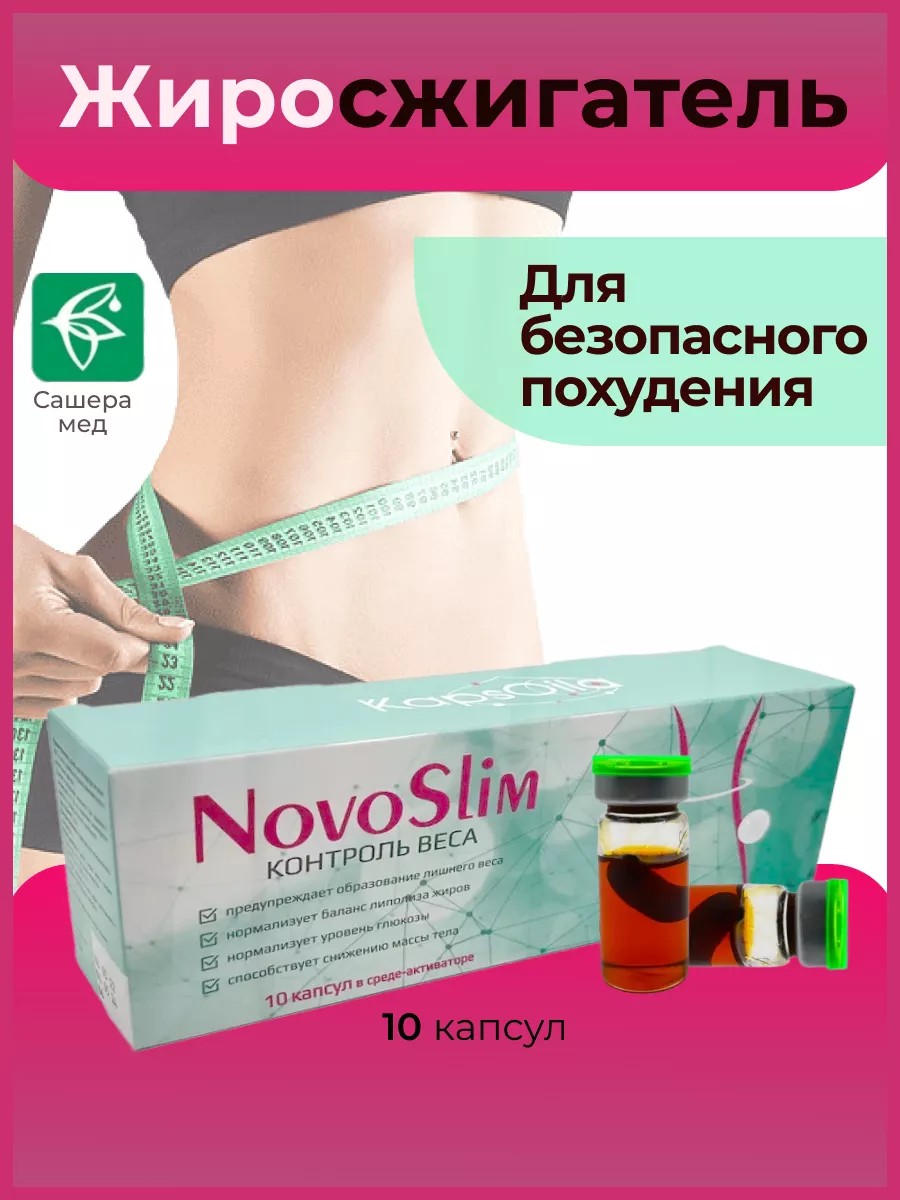 KapsOila Новослим сашера мед для быстрого и здорового похудения. Капсулы с нативным комплексом натуральных ингредиентов обладающих доказанной эффективностью снижения веса на 10-15 кг в течении 16 недель. Безопасный бад не содержит гормонов и лекарственных препаратов. Действует за счет нормализации обмена веществ, гормонального баланса, снижения уровня глюкозы в крови и общего оздоровления. Натуральный жиросжигатель обладает кето формулой (кето диета) и действует на жировые депо. Активирует липолиз расщепление жира на животе талии бедрах и других проблемных местах. Эффективность препарата усиливается за счет липосомальной среды активаторе, которая помогает усвоиться организму капсулу . В составе активатора мощнейший антиоксидант детокс астаксантин, который останавливает воспалительные процессы в организме активизирует метаболизм, повышает физическую выносливость. Бонусом применения препарата вы получите уменьшение тяги к сладкому и зажоров в стрессовых ситуациях , снижение и контроль аппетита, тяги к перееданию, нормализацию сна, работоспособности, восстановление уровня эстрогенов для женщин и тестостерона для мужчин, draineffect драйн эффект за счет ускорения лимфотока и снижения отечности. Блокатор набора веса новослим от сашера это спортпит или добавка к спортивному питанию рекомендованная для применения с ограничением углеводов и введением в привычку физических упражнений.