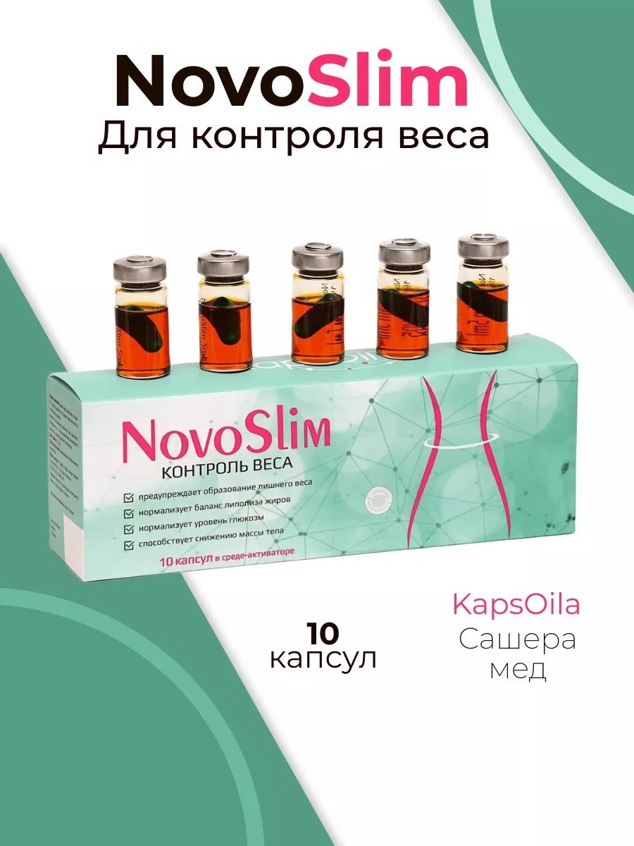 Капсулы для похудения от KapsOila сашера мед Новослим - это безопасный эффективный жиросжигатель для женщин и мужчин. Клинически доказано снижение веса на 10-15 кг за 16 недель. Природный состав препарата , направленный на естественный липолиз жира в адипоцитах, то есть способствуют расщеплению жира в жировых депо клетках , которые в основном располагаются на животе и бедрах. Эффект зонального похудения живота и других проблемных зон. Эссенциальный комплекс липидов уменьшает аппетит, активизирует расщепление жиров с выделение кетоновых тел. Усиливает кетодиету и другие таблетки для похудения. Кетоформула предупреждает запасание накопление жира в подкожном слое и на проблемной талии. Прием капсул восстанавливает уровень глюкозы за счет чего снижается тяга к сладкому. Бад за счет эффективного комплекса натуральных масел и экстрактов растения оказывает общее оздоравливающие многофункциональное действие на организм нормализует обмен веществ. Рекомендуется применение спортпита бада совместно с ограничением углеводов и физическими упражнениями. Детокс печени за счет нормализации липопротеидов, нормализация гормонального баланса, снижение тяги к перееданию. Нормализация сна и восстановление работоспособности. Натуральный органический бад Новослим биологически активная добавка для питания и красоты, блокатор набора веса - здоровый путь к идеальной фигуре. Не вызывает привыкания, может применяться длительно. Не содержит гормонов лекарственных веществ, консервантов. Применяется 30 дней по капсуле за полчаса до еды. Необходимо запить теплой водой.
