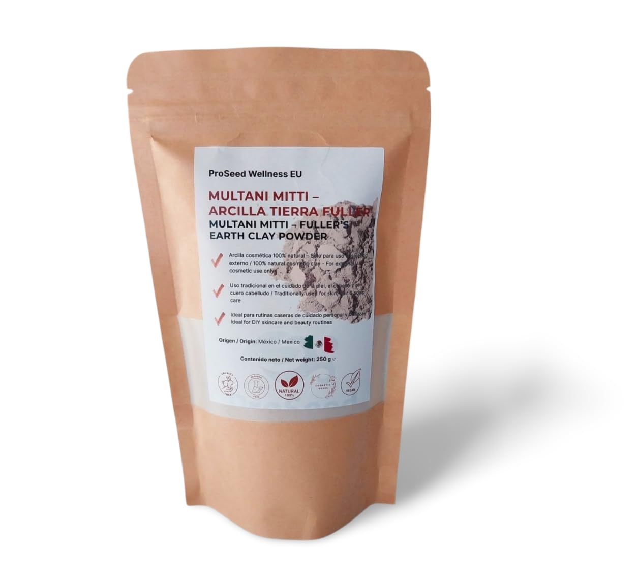 Discover the cleansing power of the Multani Mitti tone, also known as Fuller-Land. This 100 natural powder is valued for its absorbent properties that help to thoroughly cleanse the skin and remove excess oil and impurities. Ideal for oily and combination skin, regular use can contribute to a fresher, more even and smoother look. Experience the deep cleaning performance of Multani Mitti Clay, also known as Fuller's Earth. This 100 natural powder boasts the ability to absorb excess oil and impurities, leaving it feeling refreshed and balanced. Perfect for oily and combination skin, regular use helps improve the appearance of pores and provides a smoother complexion. Use: Mix with water or floral hydrosol to create a creamy paste. Apply to the face, avoiding the eye area. Leave on for 10-15 minutes and rinse with warm water. Use only for external cosmetics. INGREDIENTS Solum Fullonum (Fuller's Earth Multani Mitti) INSTRUCTIONS FOR USE Mix 1-2 clay powder with water, rose water or any suitable liquid to form a smooth paste. Simply apply to the skin to promote eyes and mouth. Leave on for 10-15 minutes. Rinse it off with warm water and cool water. Use 1-2 times a week as part of your skin care. SAFETY WARNING Use only for external cosmetics. Do not take. Avoid contact with eyes, mucous membrane and broken skin. Keep out of reach of children. Carry out a paint test before first use. Store in a cool place, do not dry in direct sunlight. See moreEco-friendly and safe packaging Eco-friendly packaging and safety, recyclable or resealable bag that maintains freshness and reduces waste. Packaged in heat-sealed and moisture-resistant packaging to maintain maximum freshness and effectiveness. Recyclable or reusable bag to ensure freshness and reduce waste. With special moisture-resistant, heat-sealed packaging for optimal freshness and efficacy. Vegan, cruelty-free and additive-free, vegan, animal-free and additive-free with no preservatives, fragrances or chemicals - only 100 natural clay from Mexico and the USA. No condoms, fragrances or chemicals – just 100 natural clay from Mexico and the United States. Cosmetic quality – corresponds to INCI and origin cosmetic quality – INCI Origin Compliant INCI: Solum Fullonum. Made from Mexico and USA. Packaged in a 100g resealable bag - free from additives, perfumes or synthetic chemicals. INCI: Solum Fullonum made from Mexico and the United States. Packaged in a 100g reusable bag. Free from additives, perfumes or synthetic chemicals. Lightening skin and gentle peeling, skin chilling and gentle exfoliation peel gently the skin surface to remove impurities and dead skin cells and improve tone, texture and clarity with continuous use. Gently peels the skin's surface to remove impurities and cells to improve skin tone, texture and clarity. Deep cleaning and fat absorption, deep cleaning and oil absorption, rich in natural minerals. This fine earth clay from Fuller helps absorb excess oil, unclog pores and promote cleaner, smoother skin ideal for oily or impurity-prone skin. Rich in natural minerals, this fine full earth clay absorbs excess oil, unclogs pores and supports clean, smooth skin ideal for oily or blemish-prone skin. 100 cosmetic use – for external use only 100 cosmetic use – suitable for external use only. This is a natural clay powder (Multani Mitti) that is only intended for cosmetic applications. It is not a hygienic mask, not for medical purposes and does not provide filtration or protection. This is a natural clay powder (Multani Mitti) that is only suitable for cosmetic applications. It is not a hygienic mask, not for medical purposes and does not provide filtering or protection for children.Multani Mitti Kleiaarde 250 g – 100 natuurlijke aarde van Fuller – gezichtsreiniging, vet en poriën – alleen voor uitwendig gebruik Multani Mitti Clay Powder – Oily Skin Poriënreiniging – 250 g Ontdek de reinigende kracht van de Multani Mitti toon, ook bekend als Fuller-Land. Dit 100 natuurlijke poeder wordt gewaardeerd om zijn absorberende eigenschappen die helpen om de huid grondig te reinigen en overtollig vet en onzuiverheden te verwijderen. Ideaal voor vettige en gemengde huid, regelmatig gebruik kan bijdragen aan een frissere, gelijkmatigere en gladdere look. Ervaar de diepe reinigingsprestaties van Multani Mitti Clay, ook bekend als Fuller's Earth. Dit 100 natuurlijke poeder is geschikt voor het vermogen om overtollige olie en onzuiverheden op te nemen, zodat het verfrist en evenwichtig wordt. Perfect voor olieachtige en combinatie van huid, normaal gebruik helpt het uiterlijk van poriën te verbeteren en zorgt voor een soepelere teint. Gebruik: Meng met water of bloemenhydrosol om een romige pasta te creëren. Aanbrengen op het gezicht, vermijd het ooggebied. Laat 10-15 minuten inwerken en met warm water afspoelen. Alleen gebruiken voor externe cosmetica. INGREDIËNTEN Solum Fullonum (Fuller's Earth Multani Mitti) GEBRUIKSAANWIJZING Meng 1-2 kleipoeder met water, rozenwater of een geschikte vloeistof om een gladde pasta te vormen. Eenvoudig op de huid aanbrengen om ogen en mond te bevorderen. Laat 10-15 minuten aan staan. Spoel het af met warm water en koel water. Gebruik 1-2 keer per week als onderdeel van je huidverzorging. VEILIGHEIDSWAARSCHUWING Alleen gebruiken voor externe cosmetica. Niet innemen. Vermijd contact met ogen, muceus membraan en gebroken huid. Buiten het bereik van kinderen houden. Voor het eerste gebruik een laktest uitvoeren. Op een koele plaats bewaren, niet in direct zonlicht drogen. Meer bekijkenMilieuvriendelijke en veilige verpakking Milieuvriendelijke verpakking en veiligheid, recyclebare of hersluitbare zak die versheid behoudt en afval vermindert. Verpakt in hitteverzegelde en vochtbestendige verpakking om maximale versheid en effectiviteit te behouden. Recyclebare of herbruikbare zak om frisheid te garanderen en afval te verminderen. Met speciale vochtbestendige, warmteverzegelde verpakking voor op
