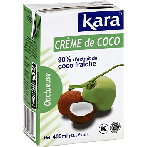 KARA coconut cream is made from naturally pressed coconut pulp, without preservatives or artificial additives. Create authentic recipes for curries, soups, or sticky rice with this essential ingredient of Asian cuisine. Its velvety texture and subtle coconut flavor will add a touch of the tropics to your sweet and savory dishes! A smooth and fragrant coconut cream to give an exotic touch to your Asian culinary creations. The 400ml size of Kara coconut cream is ideal for families and those who cook often. It's easy to store and use, allowing you to enjoy the exquisite flavor of coconut any time of year.La crème de coco KARA est fabriquée à partir de pulpe de coco pressée naturelle, sans conservateurs ni additifs artificiels. Réalisez des recettes authentiques de curry, soupe ou encore de riz gluant avec un ingrédient incontournable de la cuisine Asiatique. Sa texture veloutée et son goût subtil de noix de coco apporteront une petite touche tropicale à vos plats salés et sucrés !. Une crème de coco onctueuse et parfumée pour donner une touche d'exotisme à vos préparations culinaires asiatiques. Le format de 400 ml de la crème de coco Kara est idéal pour les familles et pour ceux qui cuisinent souvent. Il est facile à conserver et à utiliser, et vous permet de profiter de la saveur exquise de la noix de coco à tout moment de l'année.KARA - Crème de coco pure à 100 pour une cuisine asiatique authentique - 400ml - Lot De 3 - Vendu Par Lot