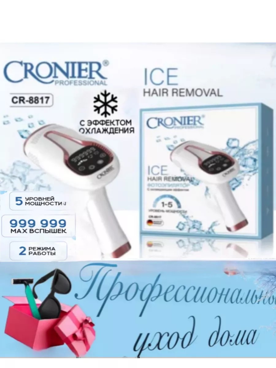 | Комплектация | Фотоэпилятор; Зарядка; Бритва; Очки |