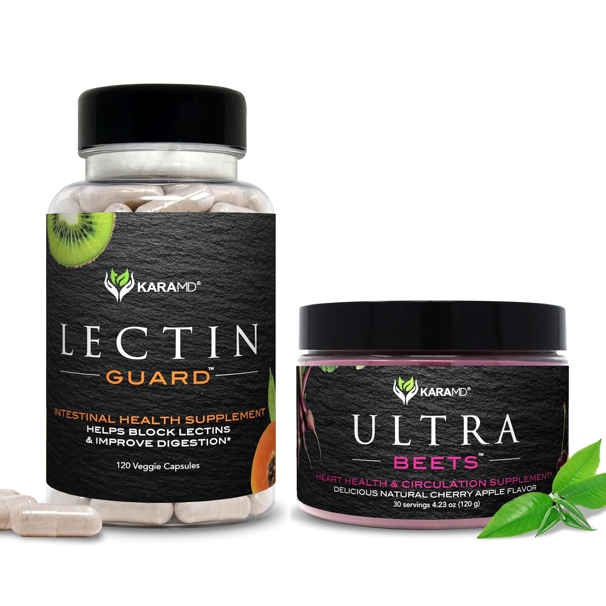 KaraMD Lectin Guard Gut Repair & Colon Cleanse Supplement & UltraBeets Beetroot Superfood Powder | Lectin Blocker Circulation & Energy Support | Non-GMO Gluten Free Vegan (30 Servings)