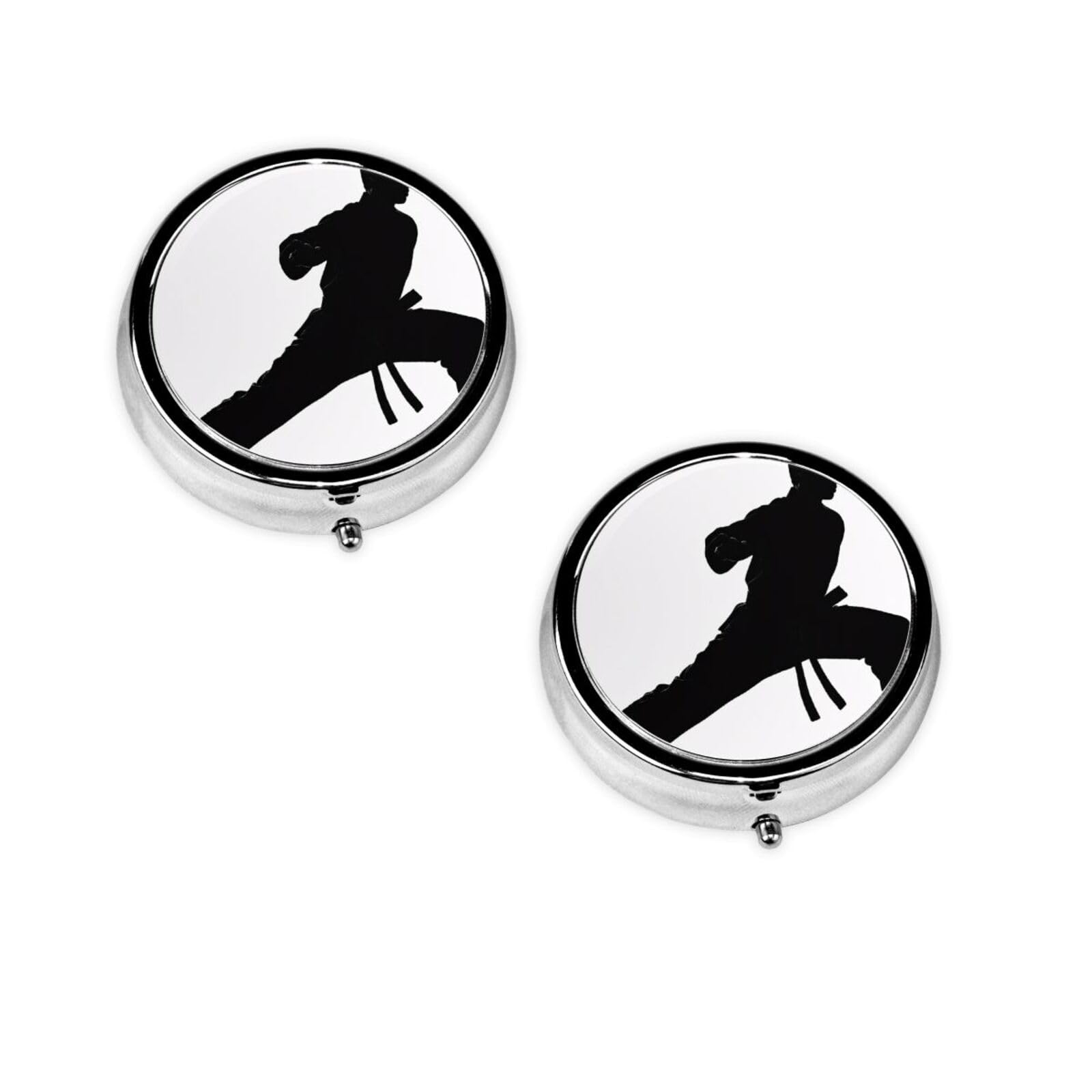 Karate Men Printed Mini Round Pill Box Pill Box 3 Compartment Medicine Pill Case Pill Organizer Travel Pillbox Portable Pill Box for Pocket Home Office Use